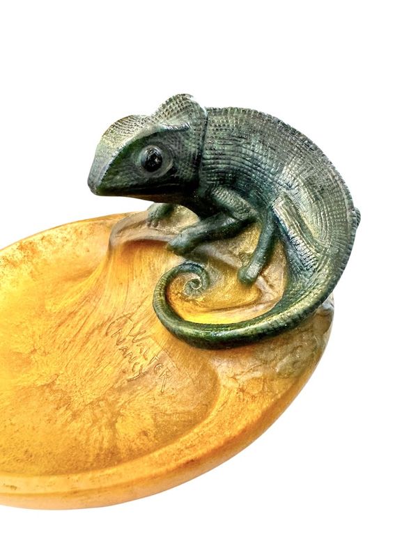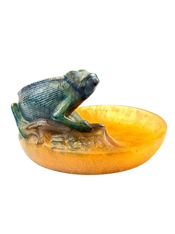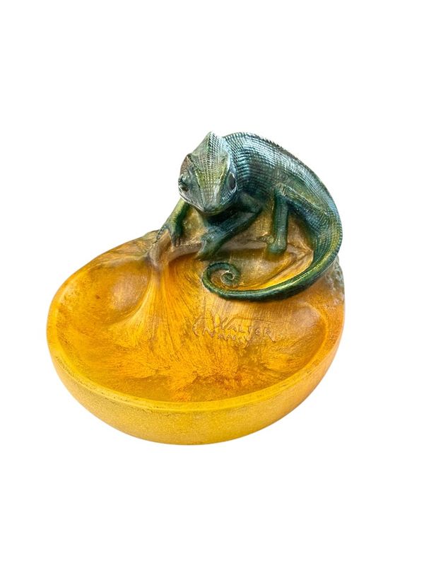 Amalric Walter “Au Chaméléon” Cup nathalie rousselot2025-10-08T17:08:25+02:00 Item Description 1 January 19, 2019 Sculptures , Glassware Cut STYLE: Art Nouveau ARTIST: Amalric Walter and Henri Bergé YEAR 1920-1925 DIMENSIONS H: 8.5cm W: 14.5 CM D: 11.5 cm Price sold [/vc_column_inner][/vc_row_inner] More information Rare chameleon trinket dish in lost-wax glass paste. Superb luminous rendering! Double signature Amalric Walter Nancy and Henri Bergé My Messages SKILLS: Art Nouveau SOLD nathalie rousselot Site creator Share Facebook Twitter LinkedIn Google + Email