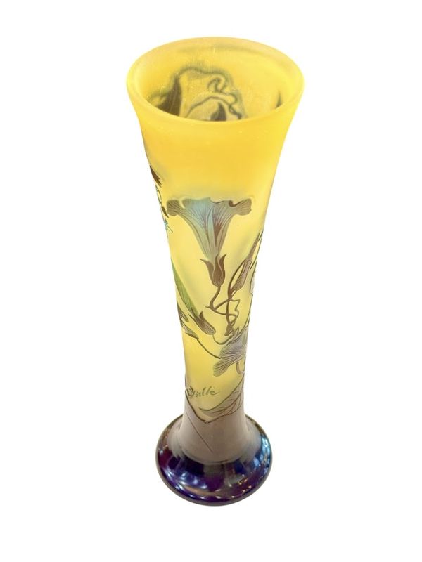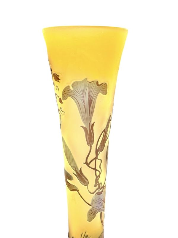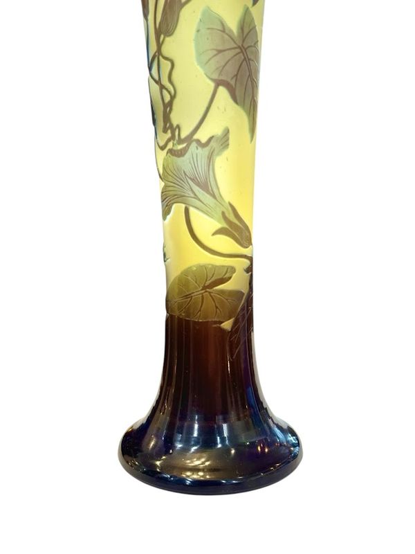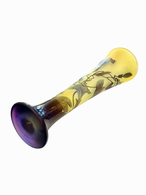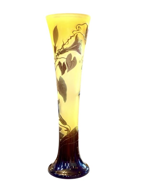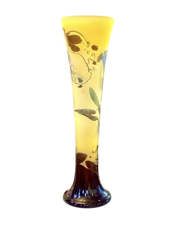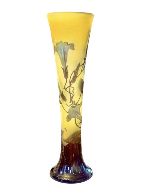 Emile Gallé Vase “With Bindweeds” nathalie rousselot2025-08-08T16:08:57+02:00 Item Description 7 August 8, 2025 Glassware Vase-Gallee-Eillets- Vase Art Nouveau STYLE ARTIST Emile Gallé YEAR 1918-1931 DIMENSIONS H: 27.5 cm D: 7.5 cm PRICE : 2900 euros More information Rare tubular vase with a shouldered body and rounded neck in double-glazed glass. Beautiful acid-etched cameo decoration of flowering branches and bindweed flowers, on a yellow and blue satin background. Beautiful luminous contrast! My Messages SKILLS: Art Nouveau Emile Gallé Vase with Bindweed nathalie rousselot Site creator Share Facebook Twitter LinkedIn Google + Email