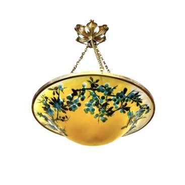 Pretty baluster-shaped vase on a pedestal with a hemmed neck in triple glass. Superb decoration engraved in fine acid reserves of branches of Myrobalan and purple and blue prunus on an opacified and iridescent orange background. Beautiful quality of production and perfect luminous rendering!