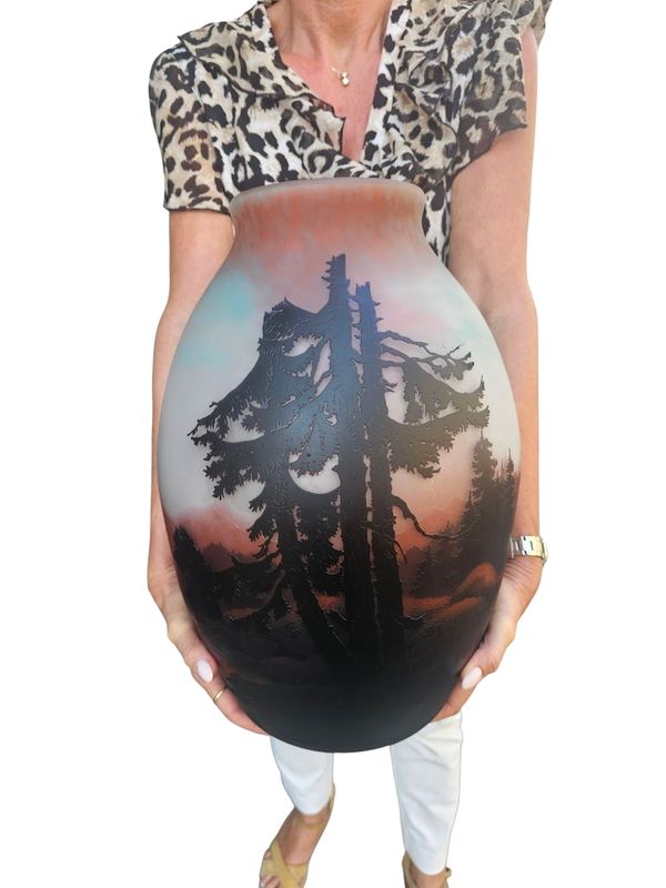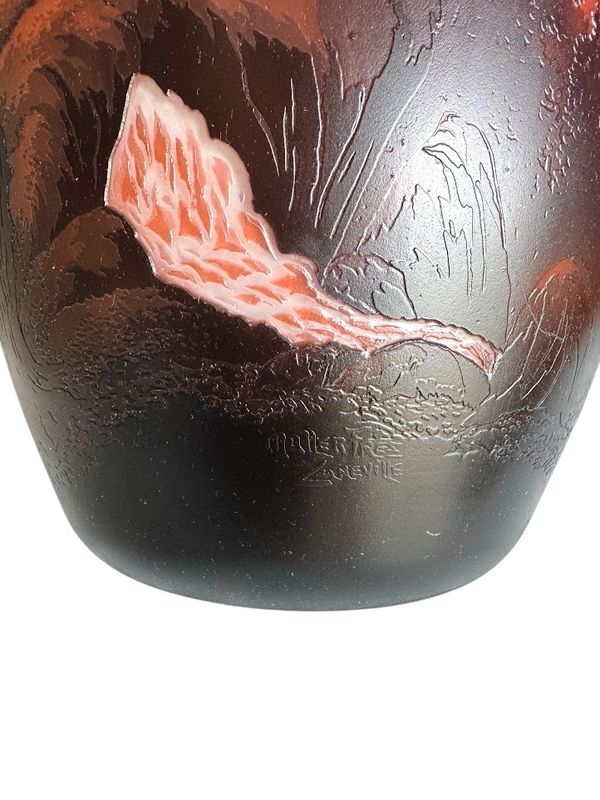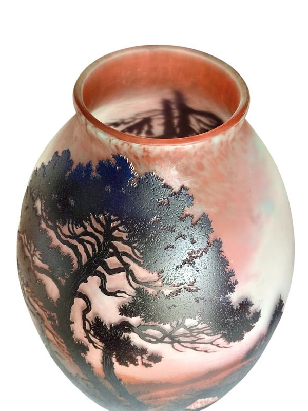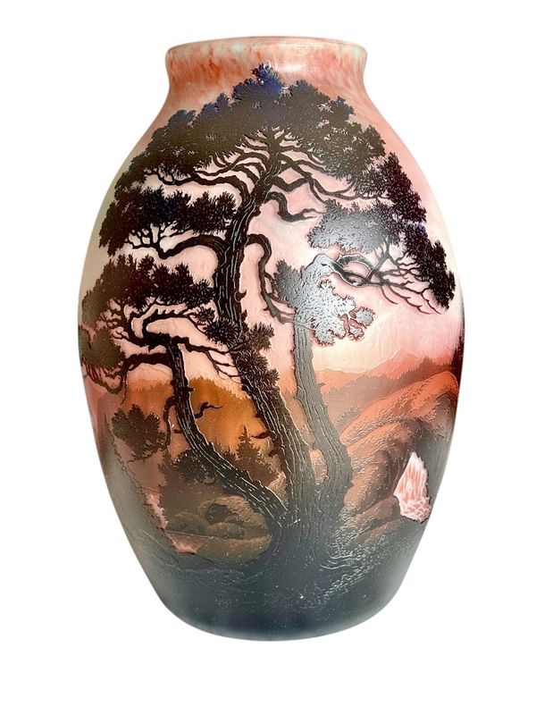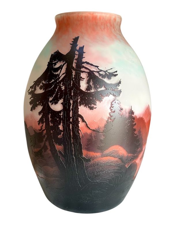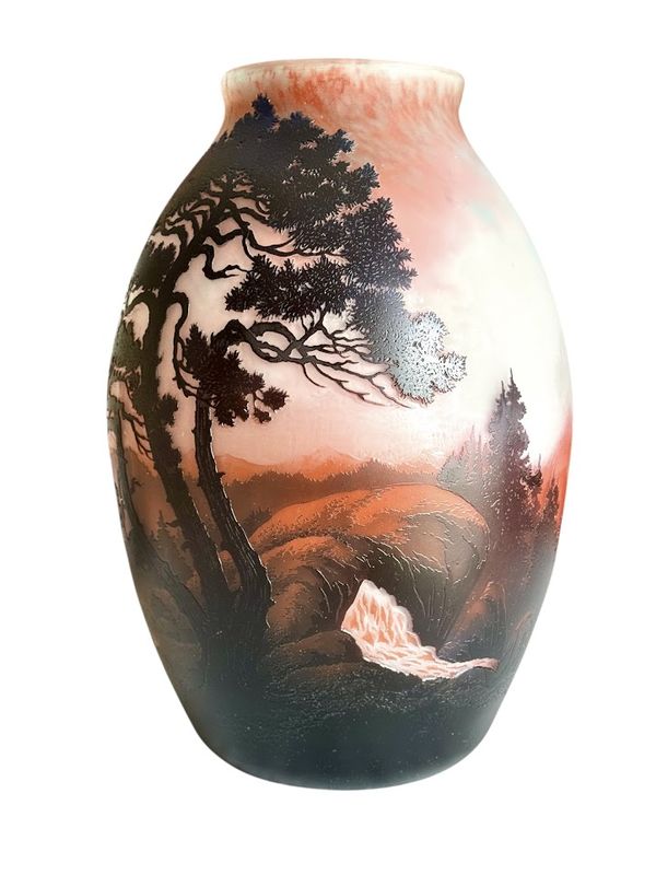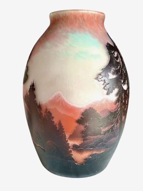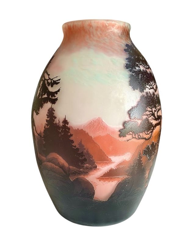 Muller Frères Lunéville Important Vase “Landscape Lake Mountain at the Cascade” nathalie rousselot2025-07-31T18:14:38+02:00 Item Description 2 July 25, 2025 Glassware . Vase STYLE: Art Nouveau Artist: Muller Frères YEAR: 1919-1933 Dimensions: H : 43 cm D: 30 cm Price : 8,900 euros More information Spectacular ovoid vase with supported collar and rounded in triple glass. Rare decor engraved in thin reserves to the acid of a lake lake mountain, animated by a cascade on a white, pink and blue Marmorean background. Magnificent luminous rendering! My Messages SKILLS: Art Nouveau Muller Frères Lunéville Share Facebook Twitter LinkedIn Google + Email