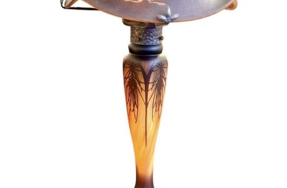 Lampada a fungo Daum Nancy "Paesaggio marino con barche"