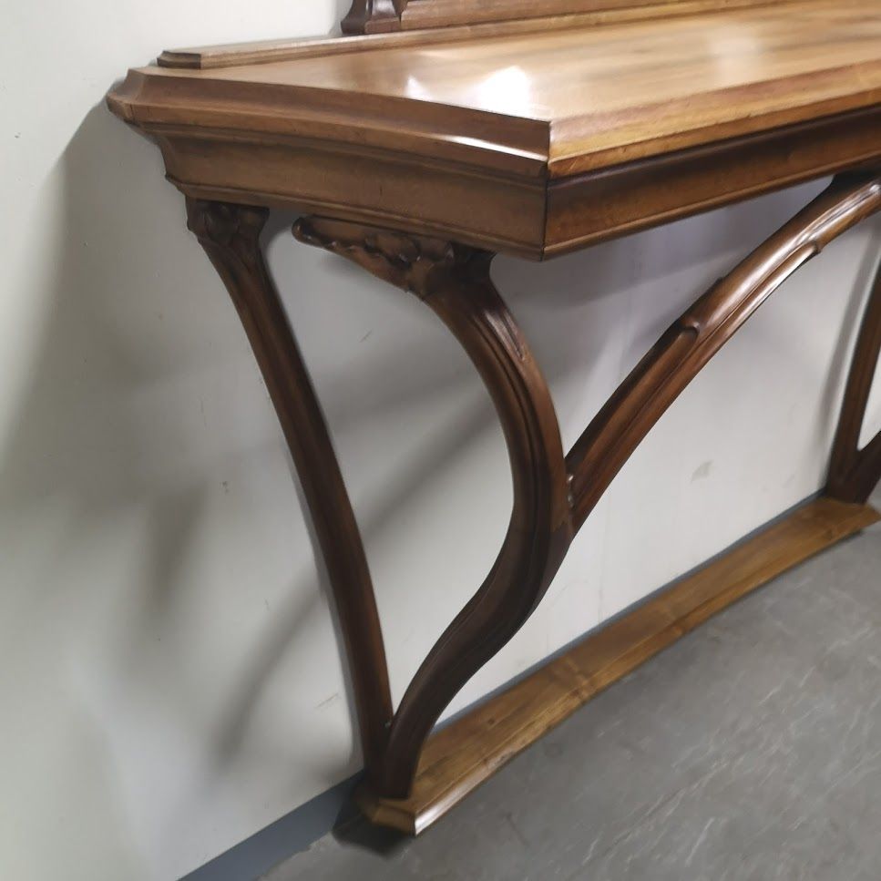 Eccezionale consolle da parete in noce massello scanalato e finemente intagliato decorato con foglie di cicoria.