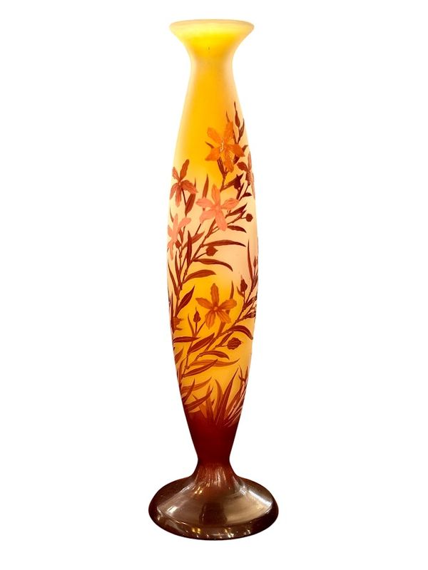 Vaso Emile Gallé “Clematide Rossa” Nathalie Rousselot2026-02-27T17:59:19+01:00 descrizione dell'articolo 7 27 febbraio 2026 Cristalleria Vaso-Gallé-Clematis- Vaso Stile: Art Nouveau ARTISTA: Stabilimenti Emile Gallé ANNO 1918-1931 DIMENSIONI A: 35,5 cm P: 10 cm PREZZO : 2800 euro Maggiori informazioni Un grazioso vaso a balaustra in vetro a doppio strato, con un motivo continuo di clematidi rosse incise in sottili riserve acidate su uno sfondo giallo satinato. Effetto perfettamente luminoso. I miei messaggi COMPETENZE: Art Nouveau Clematide in vaso Gallé nathalie rousselot Creatrice del sito suddividere Facebook Twitter LinkedIn Google + E-mail