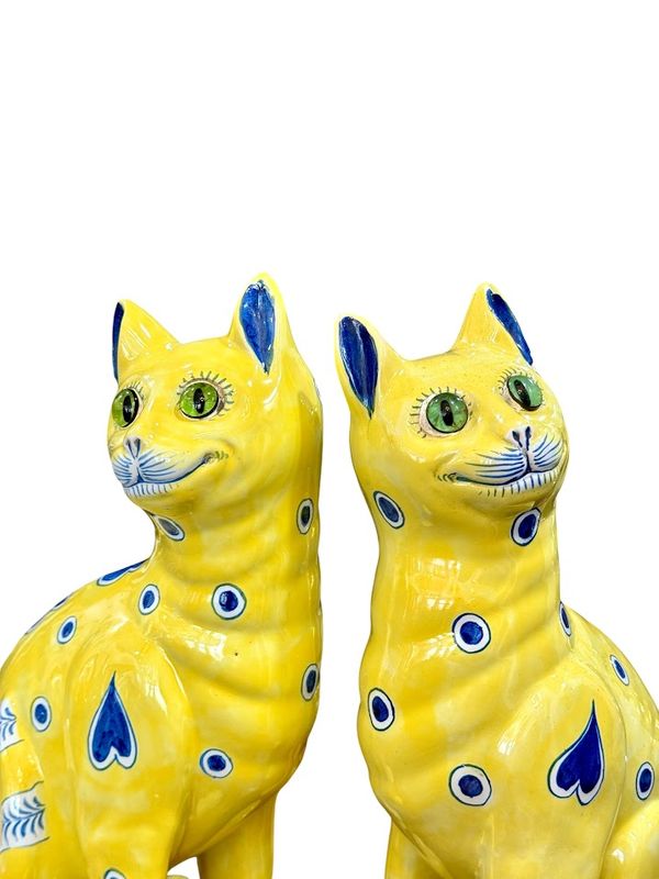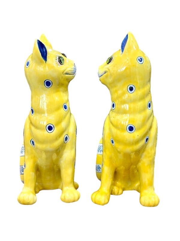 Coppia di gatti in ceramica di Emile Gallé Nathalie Rousselot2026-04-30T17:35:01+02:00 descrizione dell'articolo 7 30 aprile 2026 Cristalleria Gatti-Gallé-Giallo- Ceramica STILE: Art Nouveau ARTISTA: Emile Gallé ANNO: 1890-1900 DIMENSIONI: H: 34 cm L: 20 cm P: 14,5 cm PREZZO : 8800 euro Maggiori informazioni Rara coppia di gatti seduti in terracotta smaltata con decorazioni di cuori e cerchi blu e bianchi su sfondo giallo, con occhi in solfuro. I miei messaggi COMPETENZE: Art Nouveau Gatti di Gallé Art Nouveau Nathalie Rousselot,creatrice del sito web suddividere Facebook Twitter LinkedIn Google+ Email