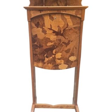 Elle présente un caisson central à ressaut, coiffé d'une corniche moulurée et galbée, ouvrant par une grande porte vitrée et un tiroir en partie basse.
