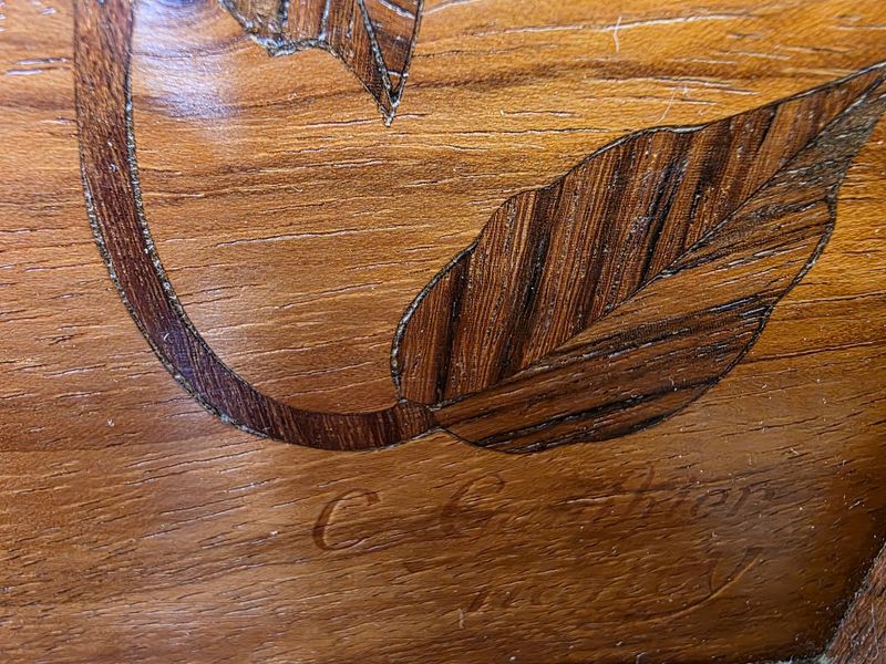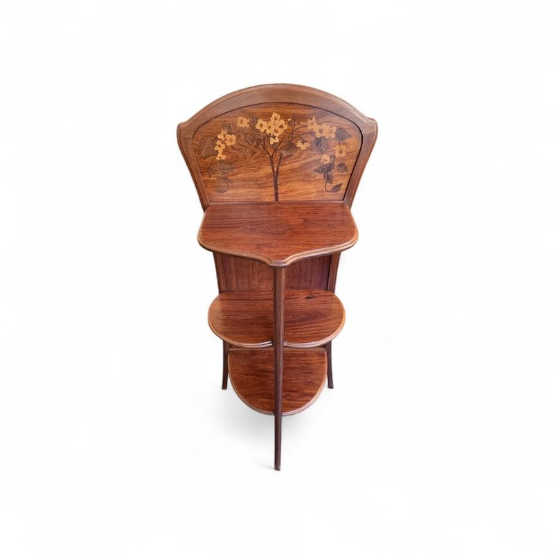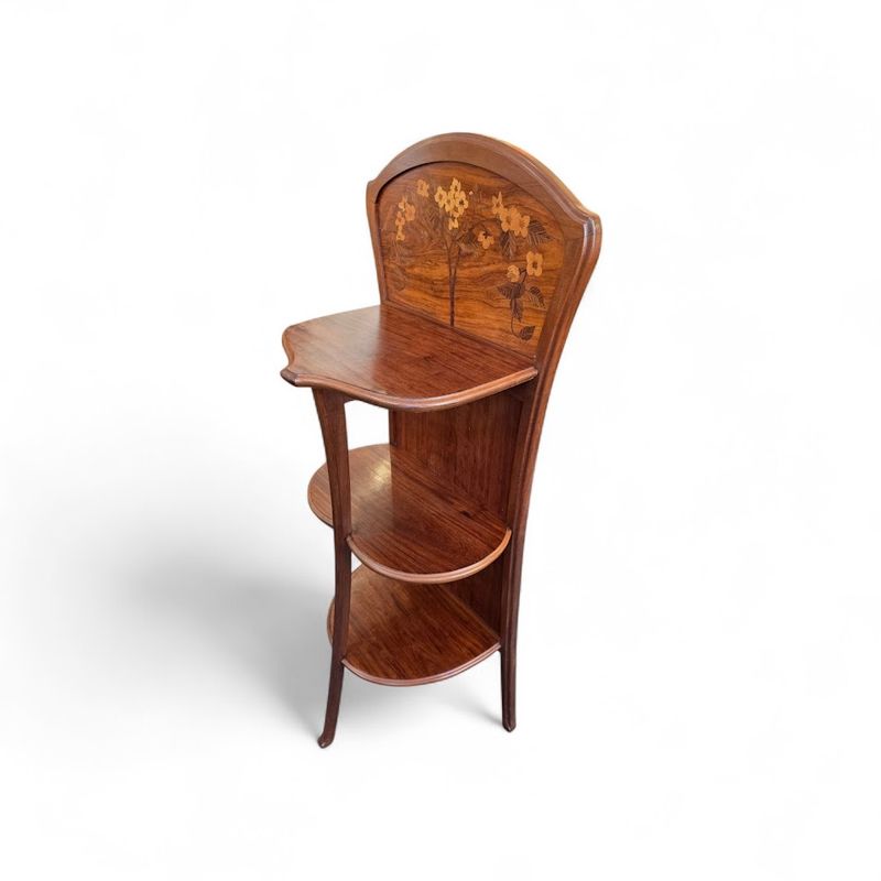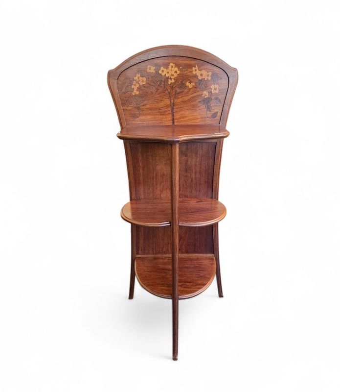 Camille Gauthier Sellette Marquetée “Décor Floral” nathalie rousselot2026-04-09T15:52:48+02:00 Description de l'objet strong> 3 9 avril 2026 Mobilier -Sellette-Camille-Gauthier- Sellette STYLE Art Nouveau ARTISTE: Camille Gauthier ANNÉE: 1900-1904 DIMENSIONS : H: 131 cm L: 56 cm P: 34 cm PRIX: 3200 Euros Plus d'information Jolie sellette murale en acajou massif et placage de palissandre à décor floral marqueté. Elle présente trois plateaux asymétriques maintenus par un montant central galbé. Belle finition cirée. Mes Messages strong> Compétences: Art Nouveau Sellette Camille Gauthier anthony sciscoCréateur du site Partager Facebook Gazouillement LinkedIn Google + Email