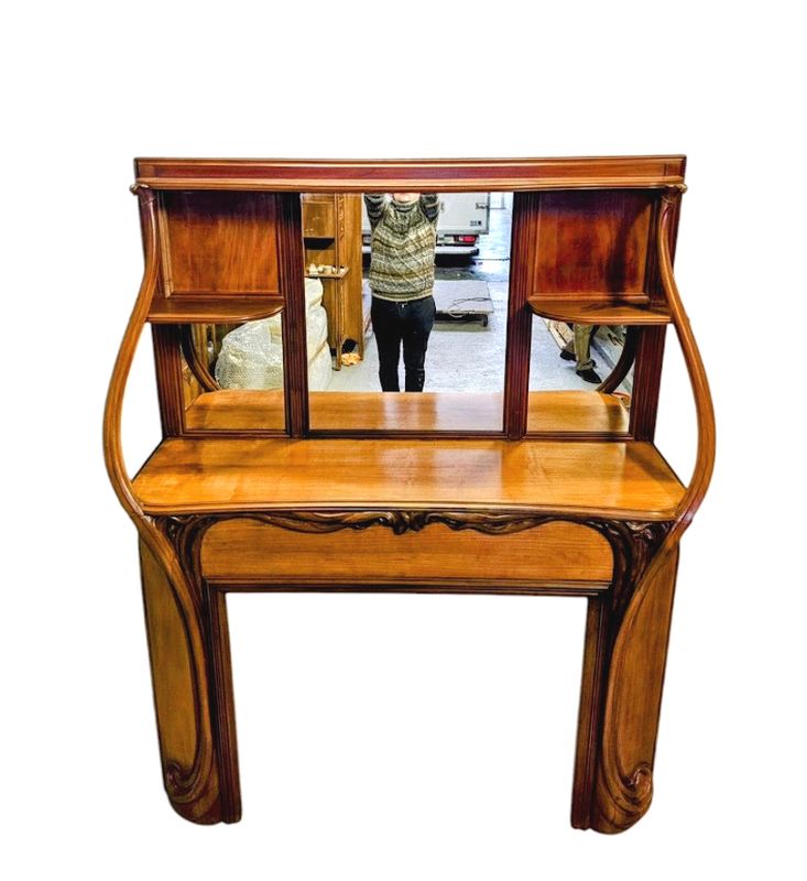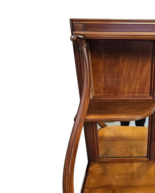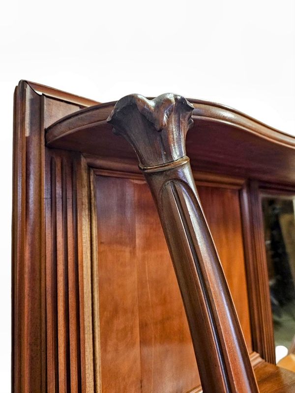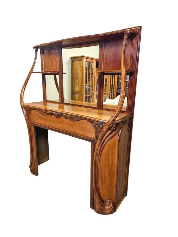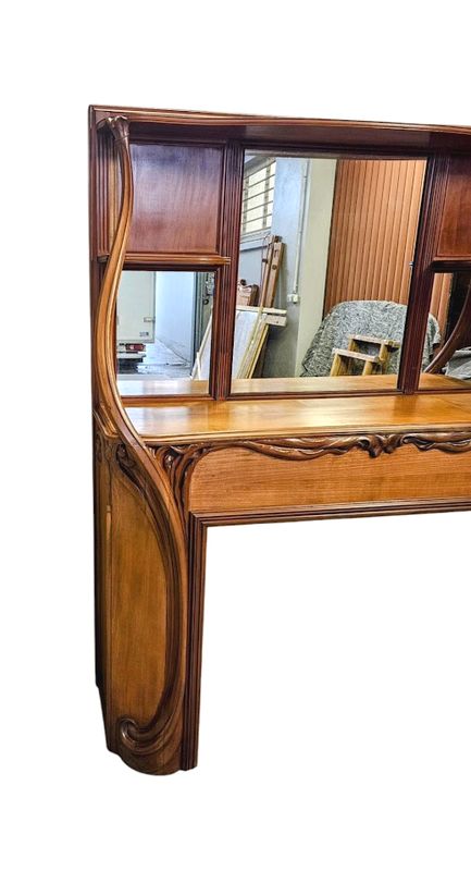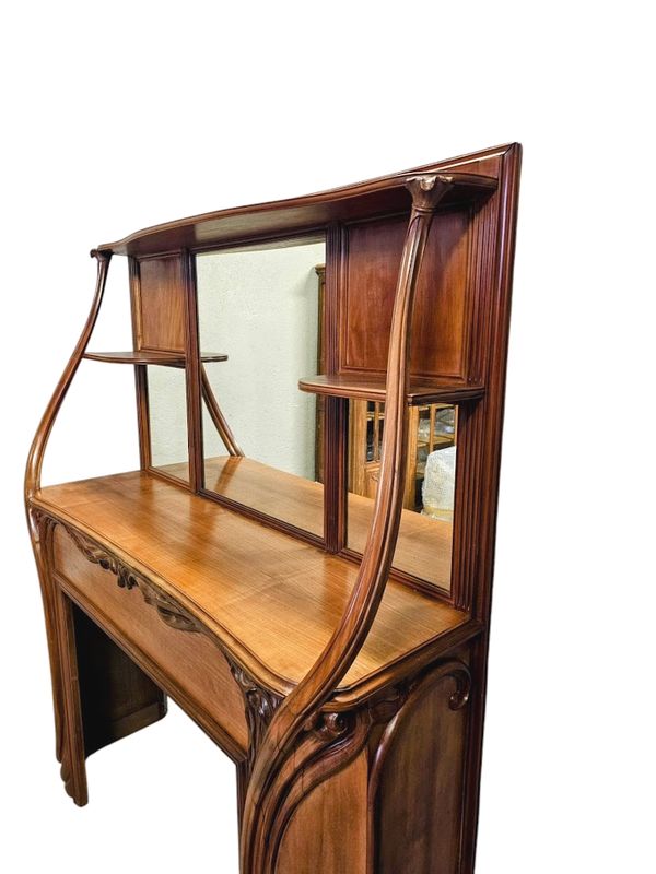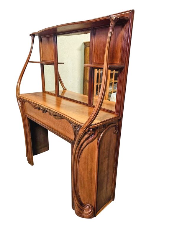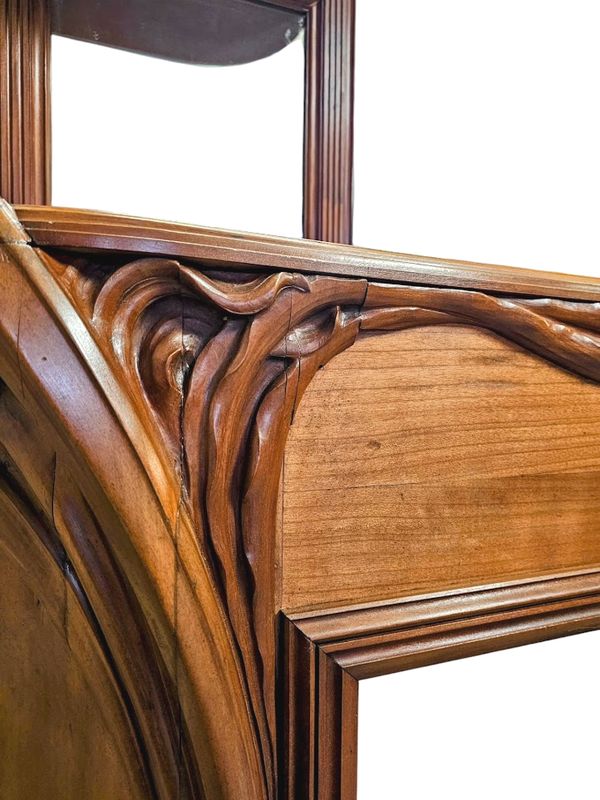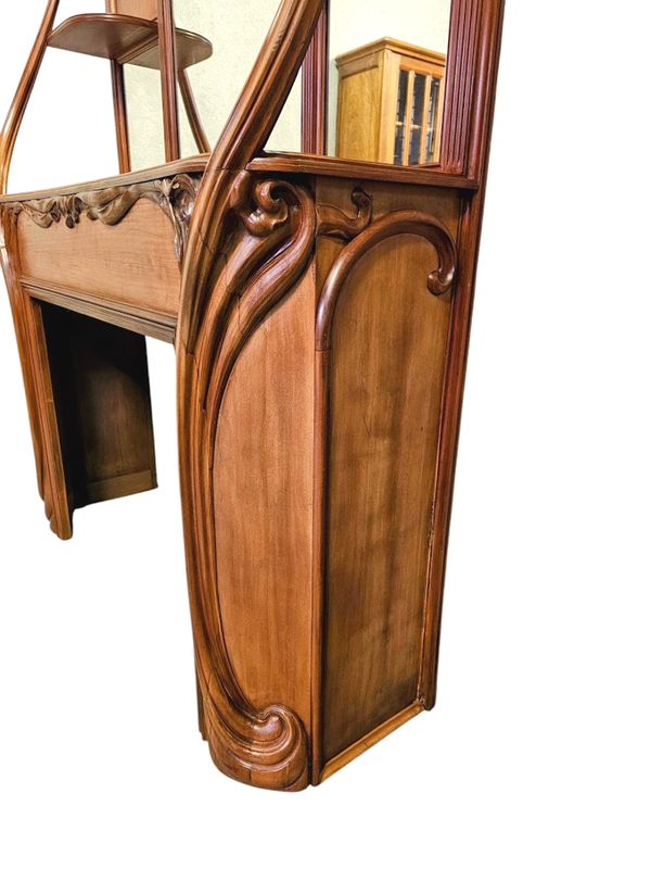 Remarquable qualité d'ébénisterie, les sculptures et la mouluration laissent deviner le style végétal sans totalement l'illustrer à la façon d'Eugène Gaillard.