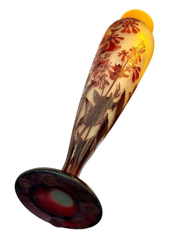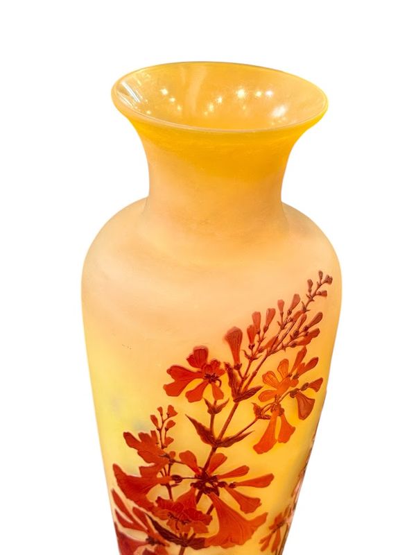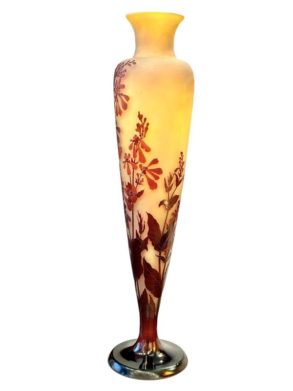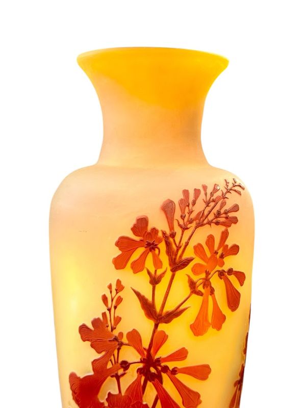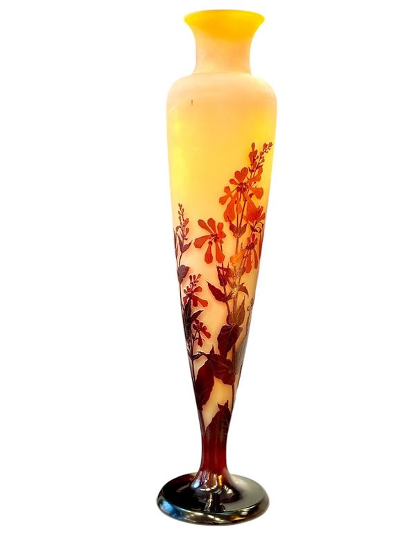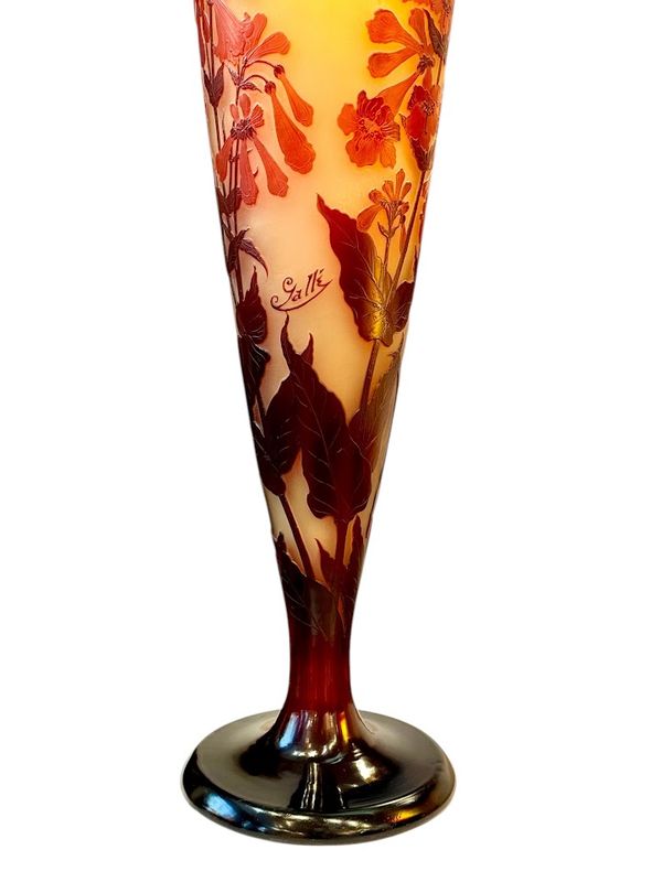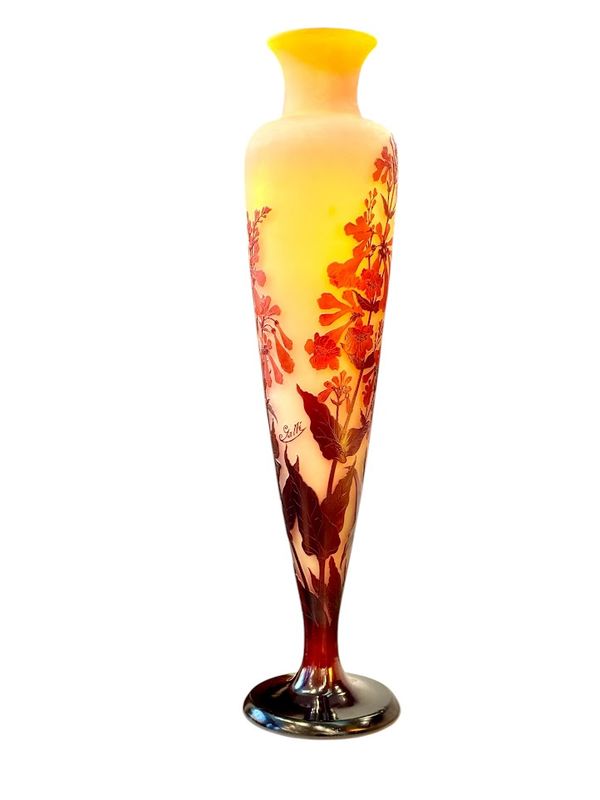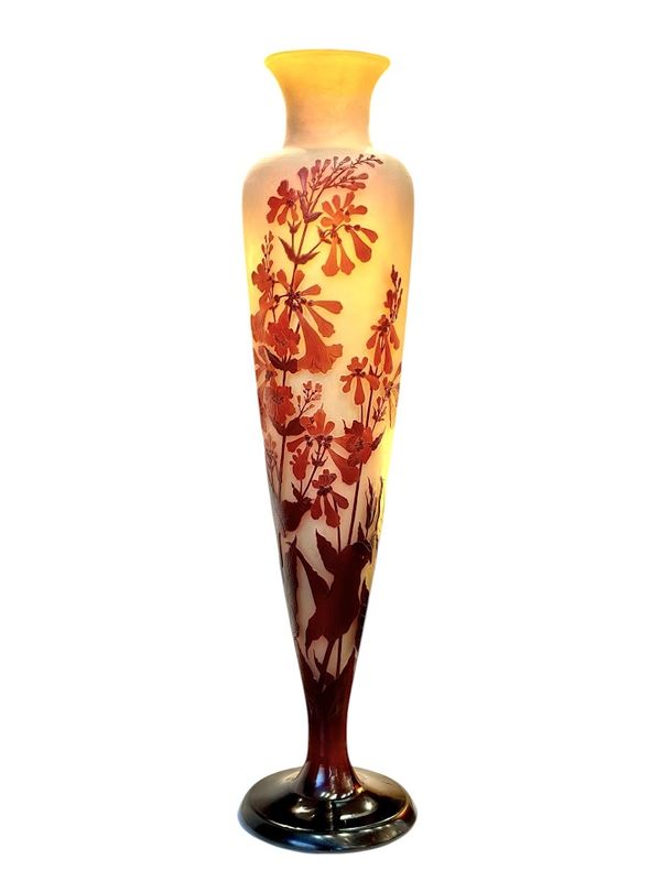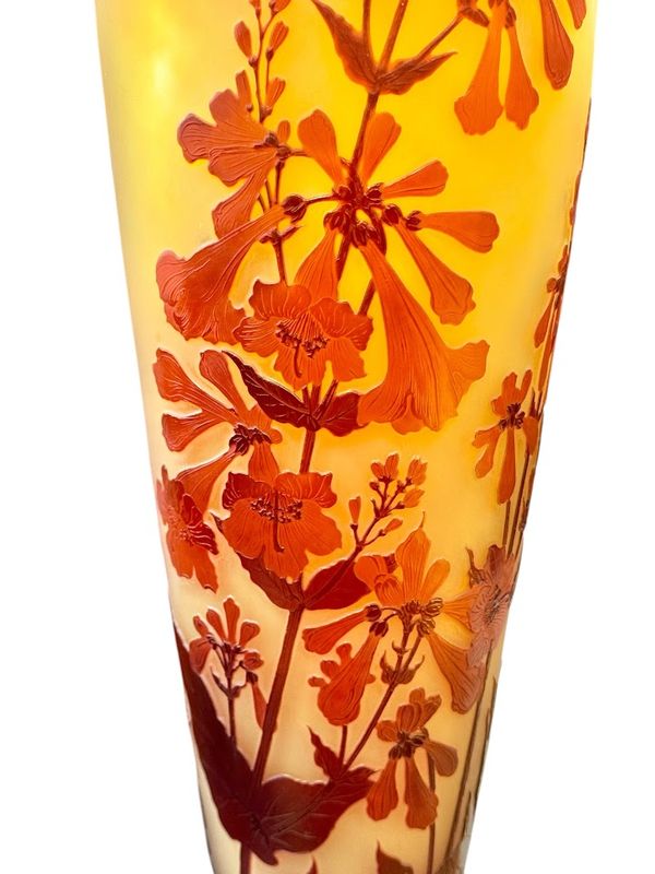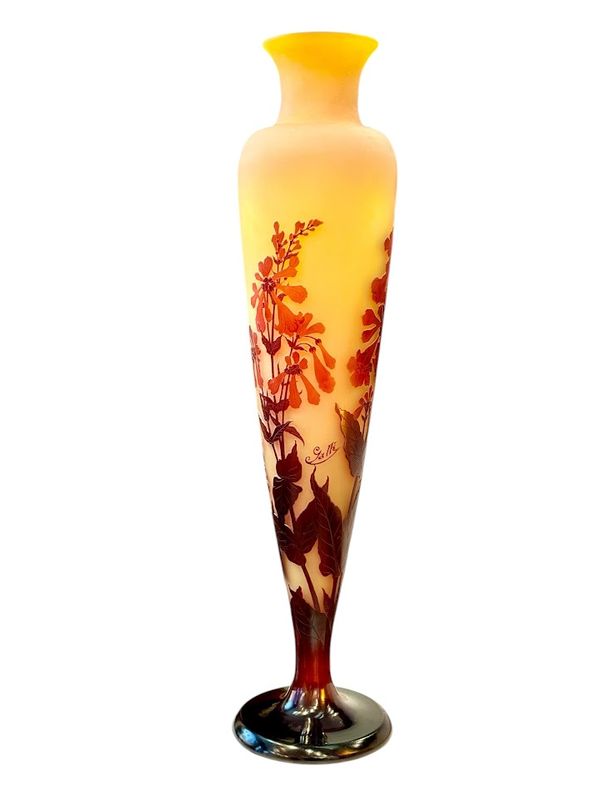 Emile Gallé Monumentale Vase “Fleurs De Galane” nathalie rousselot2025-04-04T13:35:07+02:00 Description de l'objet strong> 7 21 mars 2025 Verrerie Vase-Gallé-Aux-Galanes- Vase STYLE: Art nouveau ARTISTE: Etablissements Emile Gallé ANNÉE: 1918-1931 DIMENSIONS: H: 69 cm D: 17 cm PRIX : 11800 Euros Plus d'information Immense vase balustre à col épaulé et arrondi en verre double. Superbe décor tournant gravé en très fines réserves à l'acide, de feuillages et de fleurs de Galanes rouges, sur un fond uniformément opacifié jaune orangé. Exceptionnel rendu lumineux! Mes Messages strong> Compétences: Art Nouveau Vase Gallé Aux Galanes nathalie rousselotCréateur du site Partager Facebook Gazouillement LinkedIn Google + Email