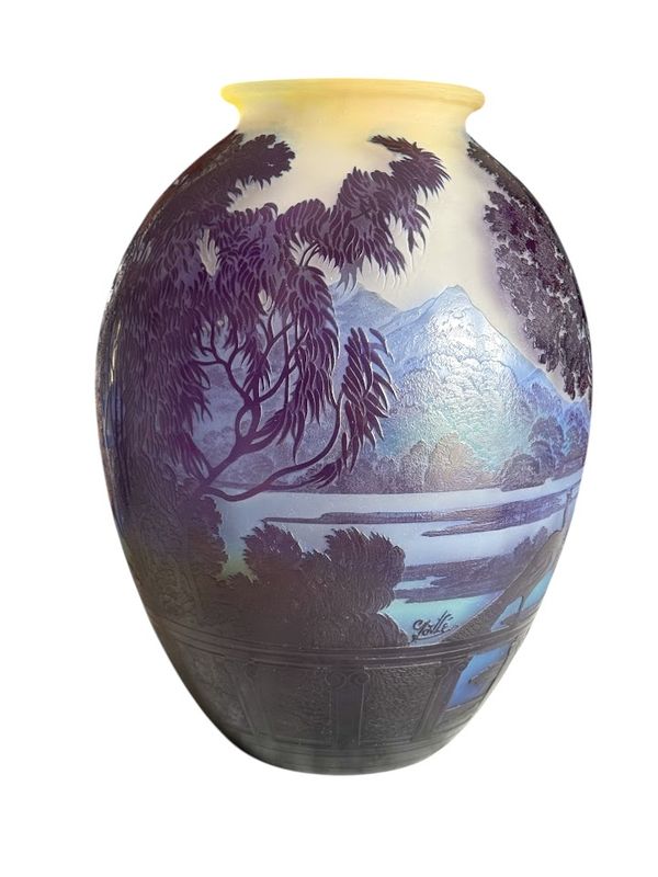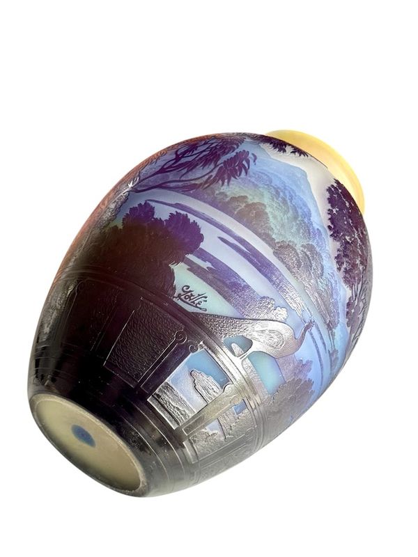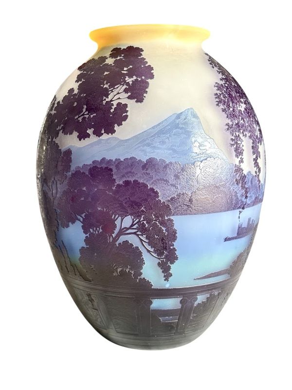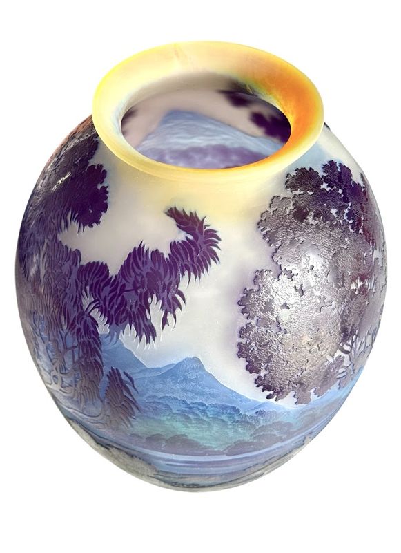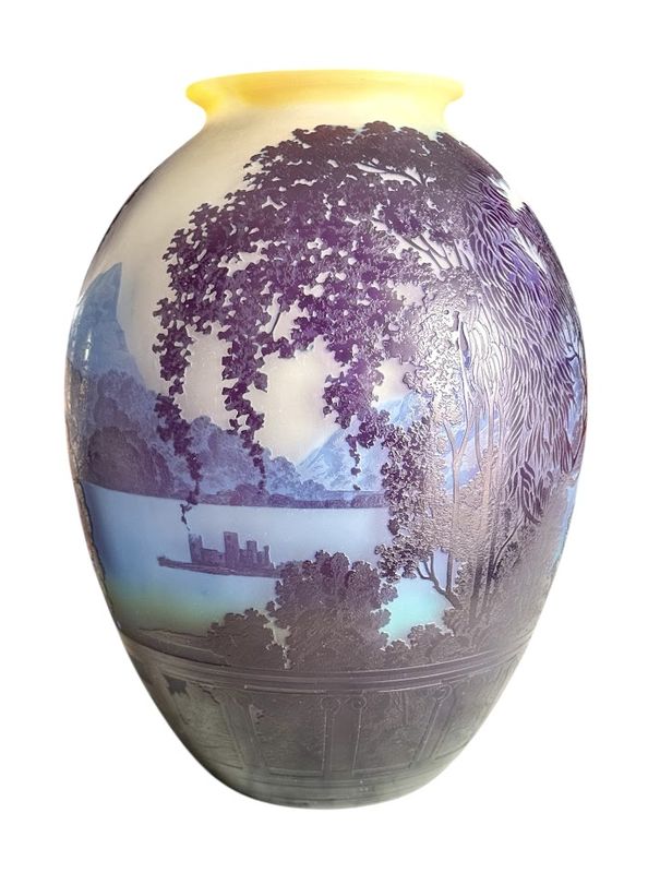 Exceptionnel vase en verre multicouche de forme ovoïde à col arrondi.