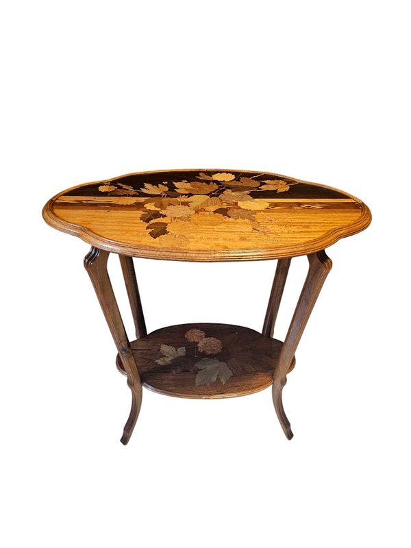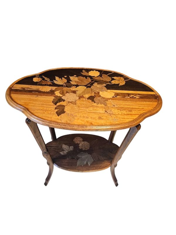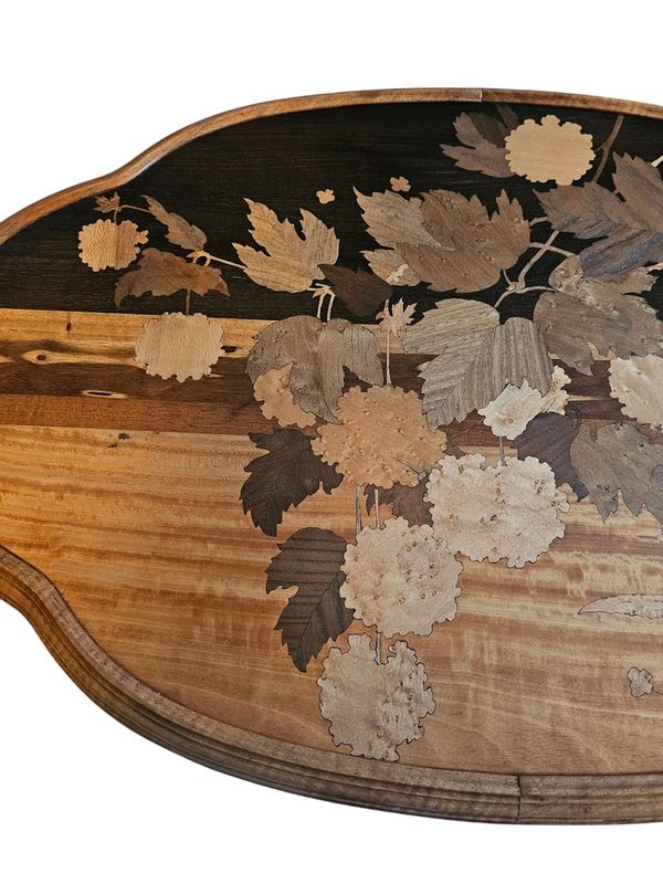 Emile Gallé Table à Thé “Viorne Boule de Neige et Papillons” nathalie rousselot2024-12-14T18:52:09+01:00 Description de l'objet strong> 3 14 décembre 2024 Mobilier -Table à Thé Emile Gallé- Table à Thé STYLE Art Nouveau ARTISTE Emile Gallé ANNÉE 1900-1910 DIMENSIONS : H: 78 cm L: 80 cm P: 52 cm PRIX: 3200 euros Plus d'information Jolie table à thé à double plateau en noyer massif. Superbe décor marqueté de boules de neige et de papillons sur fond de palissandre et d'ébène de macassar. Piétement galbé à découpes chantournées. Très belle patine! Mes Messages strong> Compétences: Art Nouveau Table à thé Emile Gallé Partager Facebook Gazouillement LinkedIn Google + Email