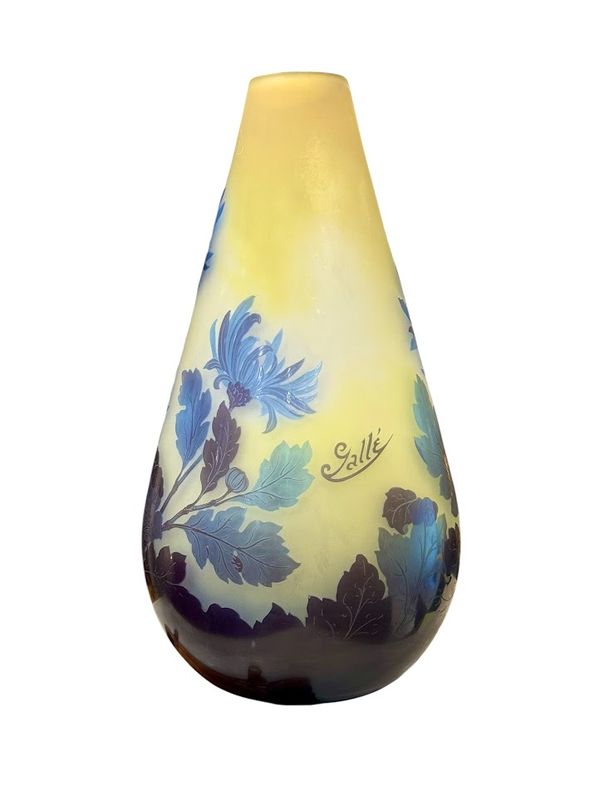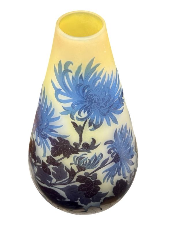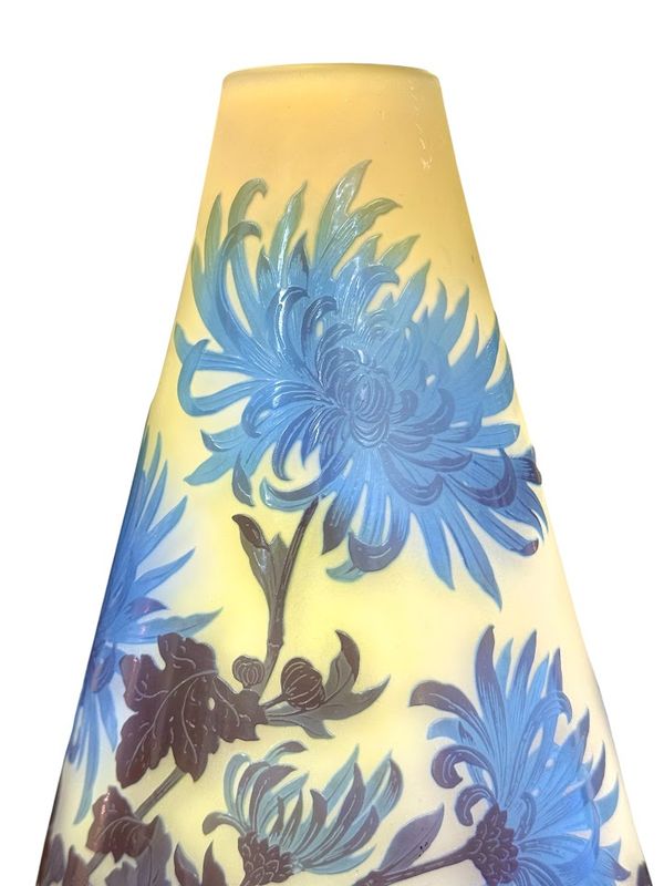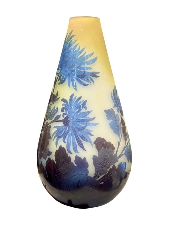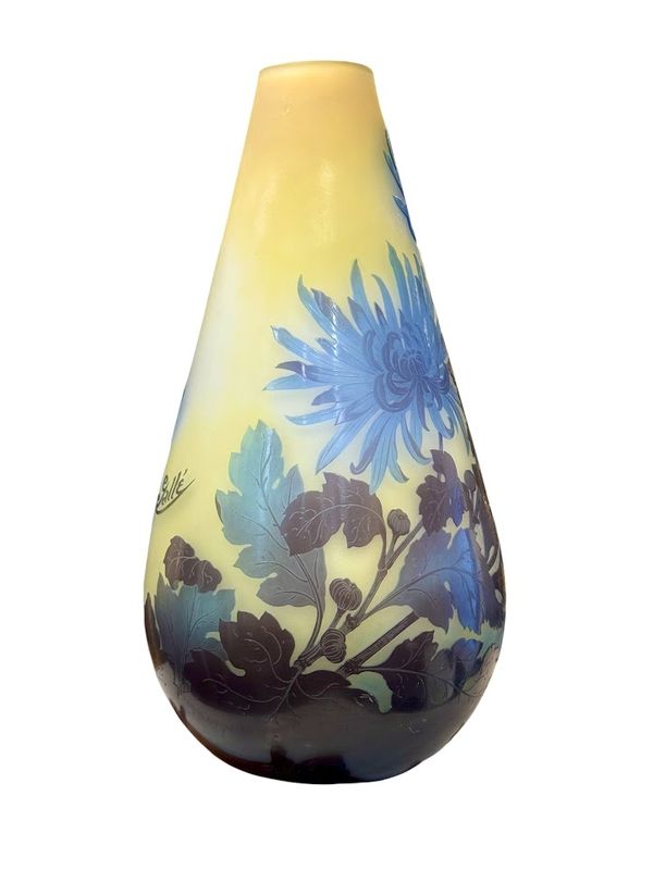 Emile Gallé Vase ” Chrysanthème Tokyo” nathalie rousselot2025-10-06T17:20:01+02:00 Description de l'objet strong> 7 31 janvier 2025 Verrerie Vase-Gallé-Chrysanthèmes- Vase STYLE Art Nouveau ARTISTE Emile Gallé ANNÉE 1918-1931 DIMENSIONS H: 32 cm L: 16cm PRIX : RESERVE Plus d'information Joli vase balustre à col arrondi en verre triple, décor finement gravé en camée à l'acide de feuillages et de fleurs de chrysanthèmes bleues , sur un fond opacifié jaune et blanc. Très beau rendu lumineux ! Mes Messages strong> Compétences: Art Nouveau RESERVE nathalie rousselotCréateur du site Partager Facebook Gazouillement LinkedIn Google + Email