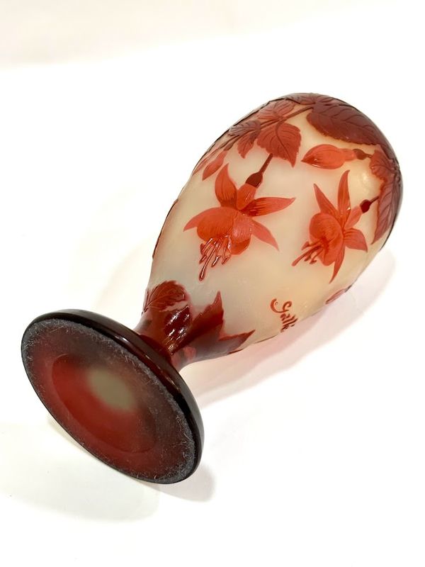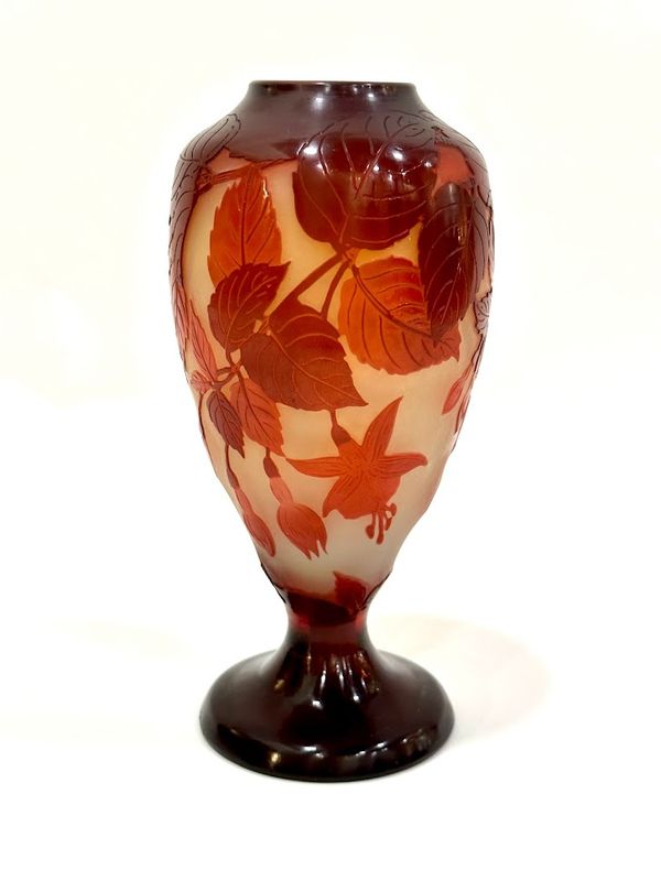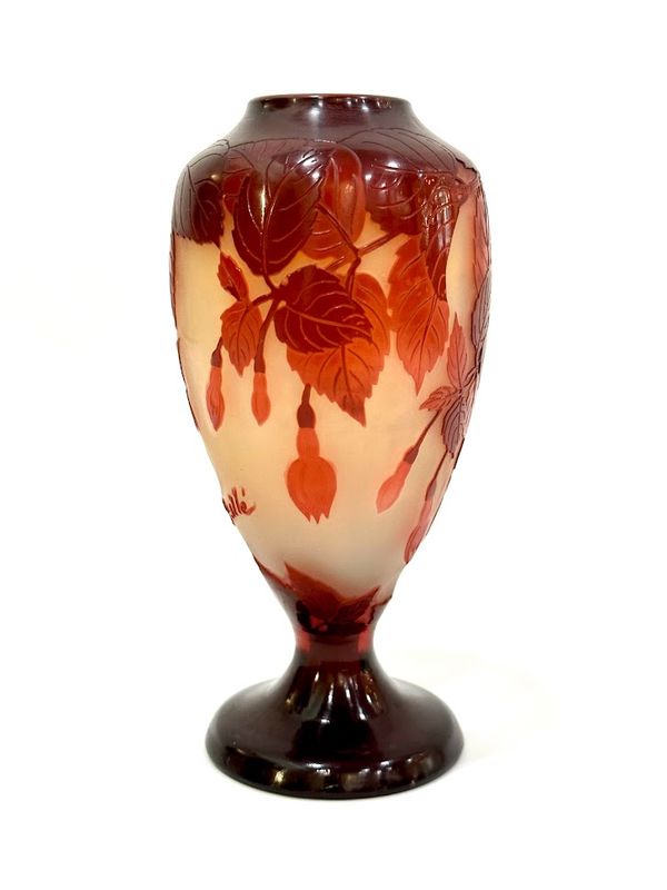 Emile Gallé Vase “Aux Fuchsias” nathalie rousselot2023-05-06T17:42:42+02:00 Description de l'objet strong> 5 6 mai 2023 Verrerie Vase-Gallé-Aux-Fuchsias Vase STYLE Art nouveau ARTISTE Emile Gallé ANNÉE 1918-1931 DIMENSIONS H: 20 cm L: 9 cm PRIX : 1900 Euros Plus d'information Vase en verre double de forme balustre sur piédouche, décor gravé en camée de fleurs de fuchsias, dans les tons de rouges et bordeaux sur un fond satiné de jaune. Couleurs lumineuses ! Mes Messages strong> Compétences: Art Nouveau Vase Gallé Art Nouveau "Aux Fuchsias" nathalie rousselotCréateur du site Partager Facebook Gazouillement LinkedIn Google + Email
