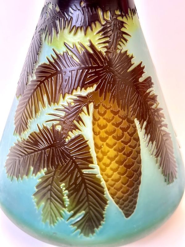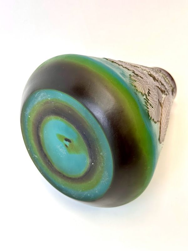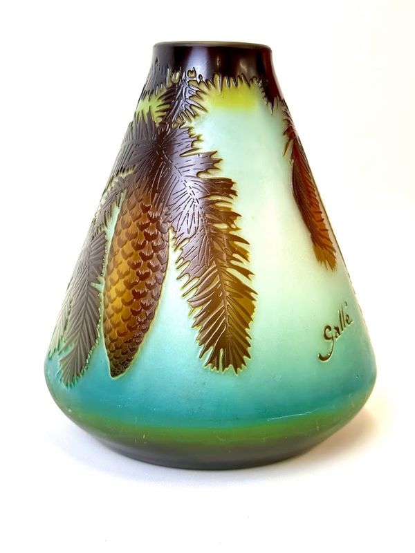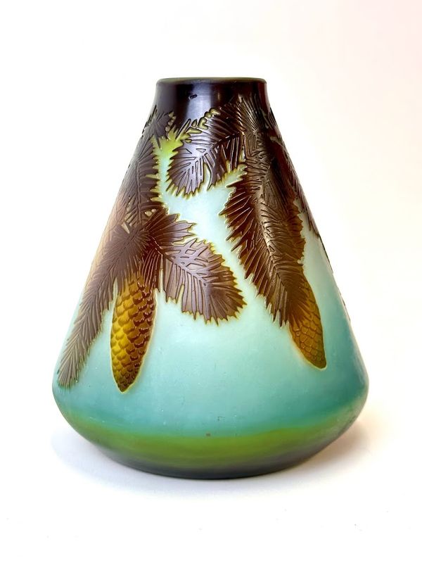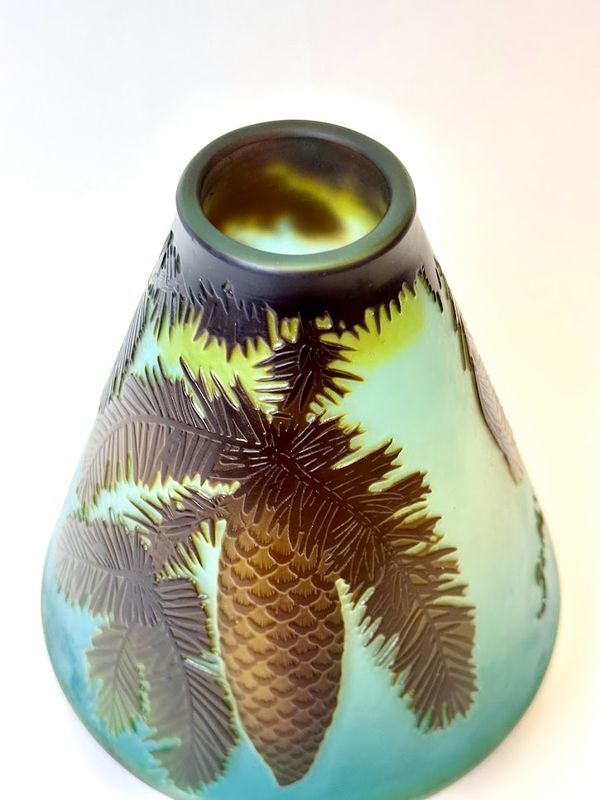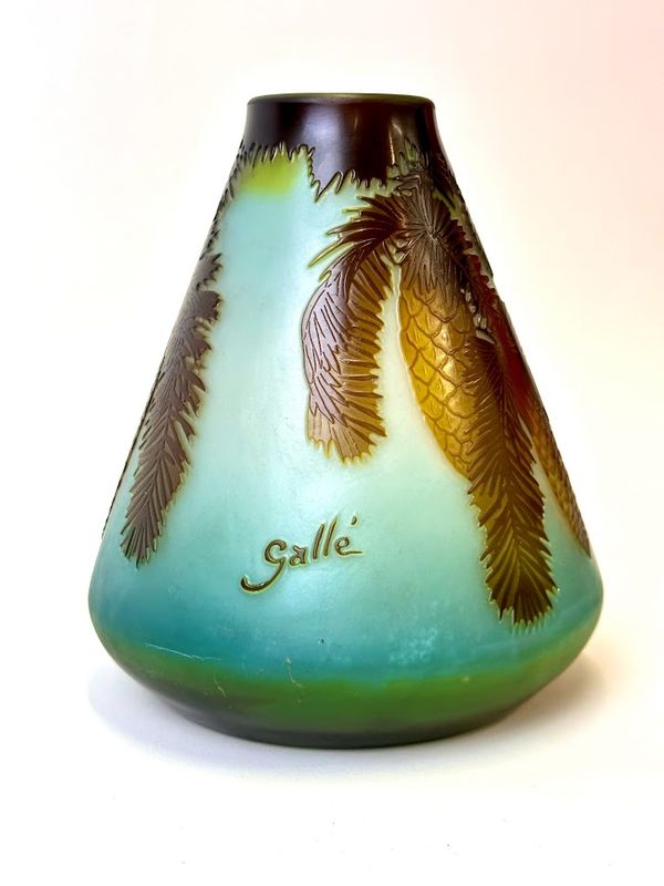 Emile Gallé Vase “Aux Pins” nathalie rousselot2023-12-20T19:18:56+01:00 Description de l'objet strong> 7 20 décembre 2023 Verrerie Vase-Gallé-Aux-pins- Vase STYLE Art nouveau ARTISTE Emile Gallé ANNÉE 1918-1931 DIMENSIONS H: 17,5 cm L: 15 cm PRIX : 3500 Euros Plus d'information Joli vase tronconique à col arrondi en verre double finement gravé en camée à l'acide, de branches et de pommes de pin, dans des tons nuancés de bruns sur un fond satiné bleu turquoise. Belle qualité de réalisation ! Mes Messages strong> Compétences: Art Nouveau Vase Gallé Aux Pins nathalie rousselotCréateur du site Partager Facebook Gazouillement LinkedIn Google + Email