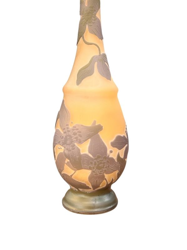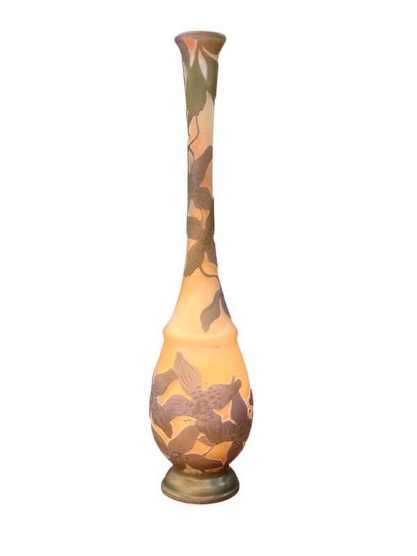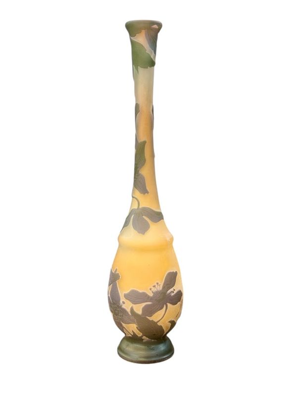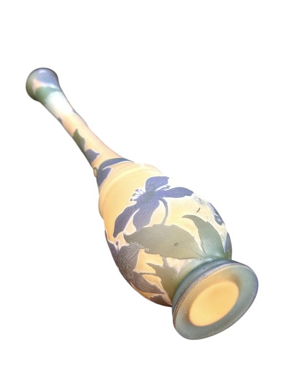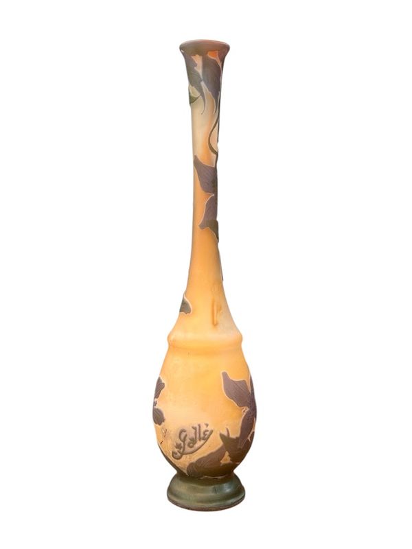 Emile Gallé Vase Soliflore “Clématites” nathalie rousselot2025-11-01T14:55:48+01:00 Description de l'objet strong> 7 12 avril 2025 Verrerie Vase-Gallé-Clématites- Vase STYLE: Art nouveau ARTISTE: Emile Gallé ANNÉE: 1904-1908 DIMENSIONS: H: 23.5 cm D: 5.5 cm PRIX: VENDU Plus d'information Joli vase ovoïde à panse renflée et long col concave, sur piédouche en verre triple. Décor gravé en fines réserves à l'acide de feuillages et de fleurs de clématites mauves et vertes, sur un fond orangé satiné et opacifié. Signature à l'étoile. Mes Messages strong> Compétences: Art Nouveau VENDU nathalie rousselotCréateur du site Partager Facebook Gazouillement LinkedIn Google + Email