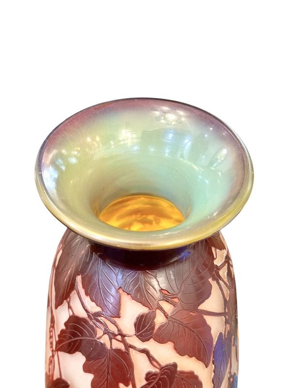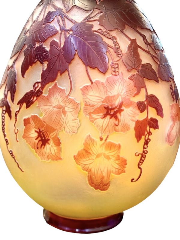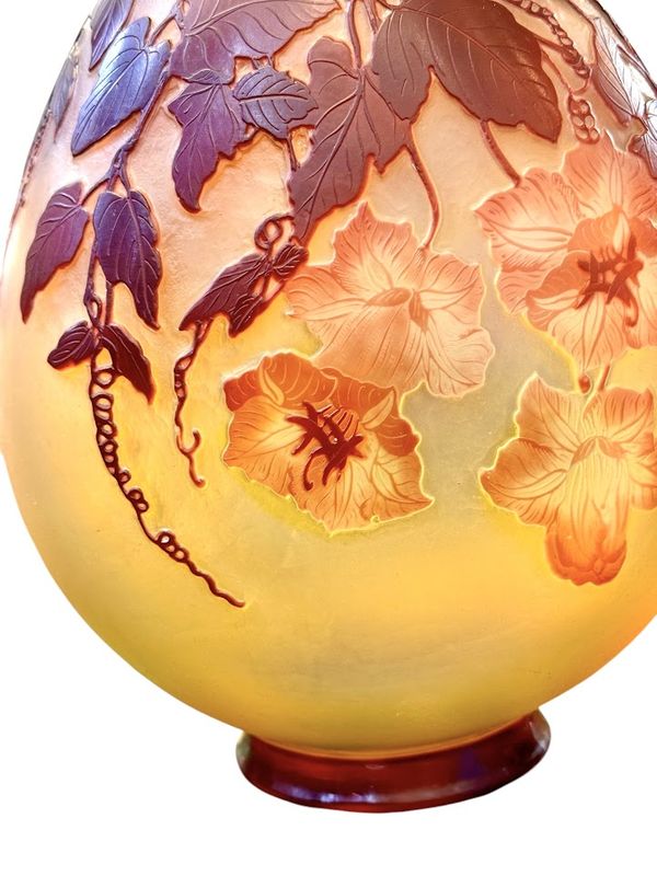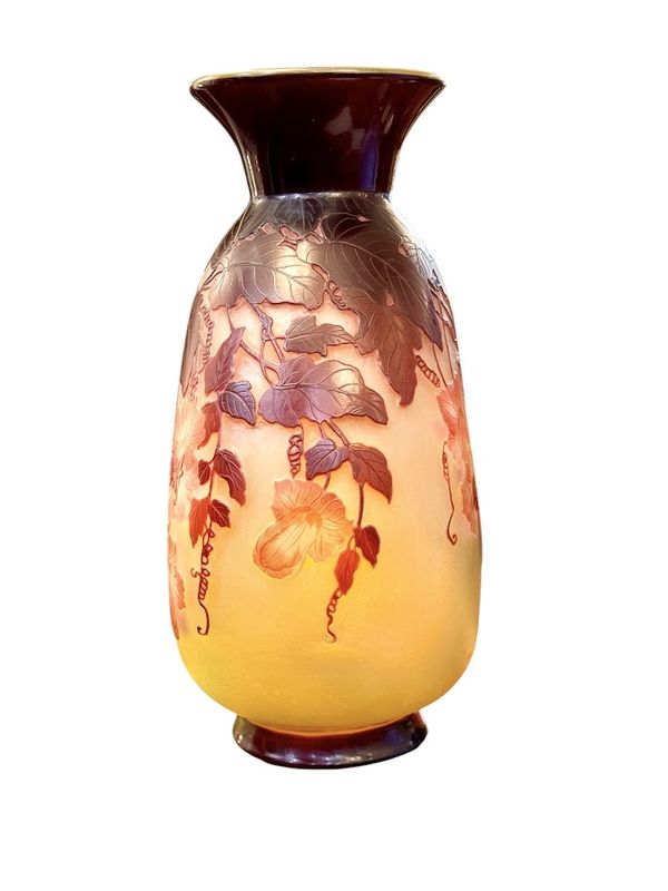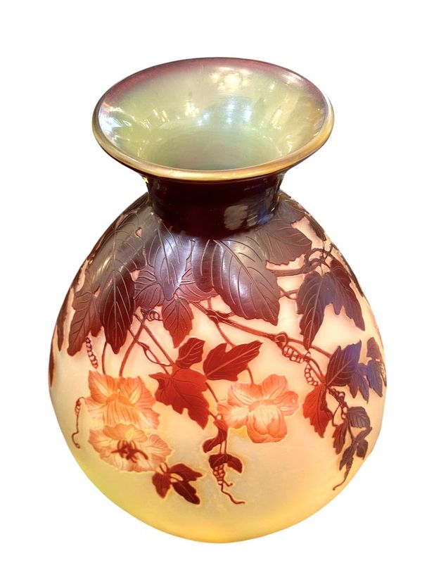 Emile Gallé Vase “Cobées Rouges” nathalie rousselot2025-05-09T14:27:30+02:00 Description de l'objet strong> 7 17 avril 2025 Verrerie Vase-Gallé-Cobées- Vase STYLE Art nouveau ARTISTE Emile Gallé ANNÉE 1918-1931 DIMENSIONS H: 31 cm D: 21 cm PRIX : 4800 Euros Plus d'information Vase de forme gourde à panse méplate et haut col arrondi sur une base circulaire. Joli décor gravé en fines réserves à l'acide de feuillages et de fleurs de cobées rouges tombantes sur un fond satiné de jaune. Très beau contraste de couleurs ! Mes Messages strong> Compétences: Art Nouveau Vase Gallé "Cobées Rouges" nathalie rousselotCréateur du site Partager Facebook Gazouillement LinkedIn Google + Email