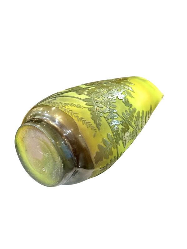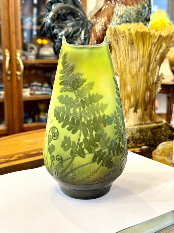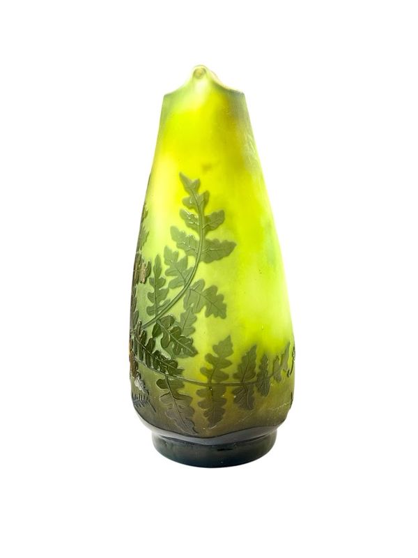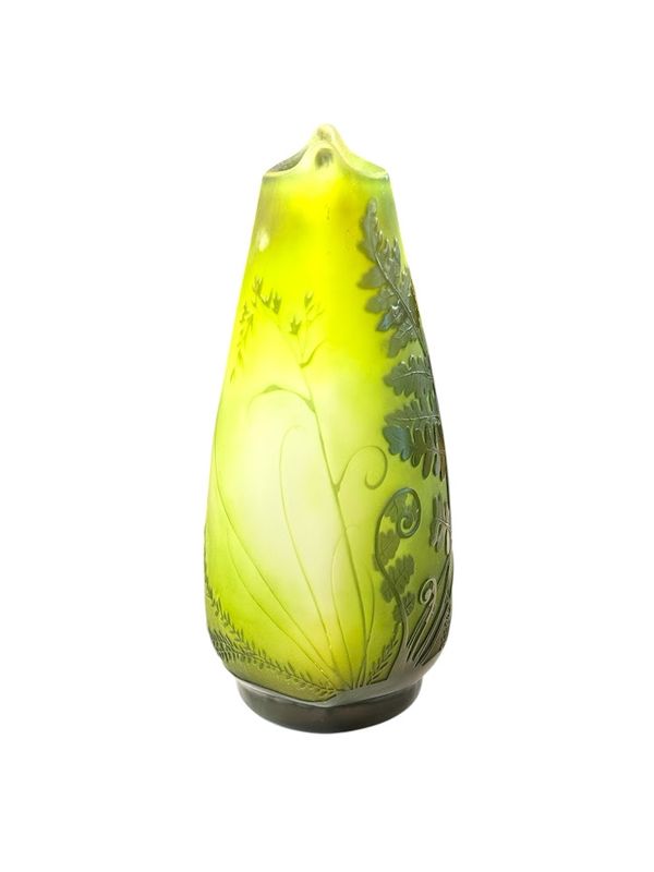 Emile Gallé Vase “Fougère Scolopendre” nathalie rousselot2025-10-29T17:23:26+01:00 Description de l'objet strong> 7 29 octobre 2025 Verrerie Vase-Gallé-Fougère- Vase STYLE Art nouveau ARTISTE Emile Gallé ANNÉE 1907-1914 DIMENSIONS H: 20 cm L: 12 cm P: 9 cm PRIX : 1600 Euros Plus d'information Beau vase en verre double à panse ovoïde méplate sur talon et col navette, étiré et pincé à chaud. Décor gravé en camée à l'acide de fougères vertes sur un fond nuancé vert et blanc. Mes Messages strong> Compétences: Art Nouveau Vase Gallé Aux Fougères nathalie rousselotCréateur du site Partager Facebook Gazouillement LinkedIn Google + Email