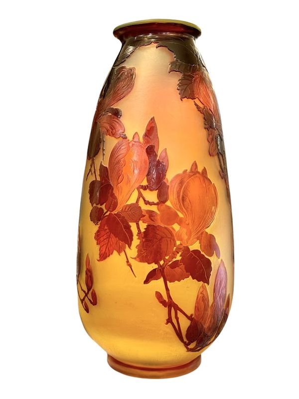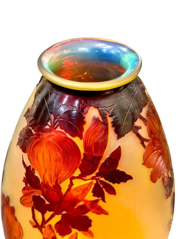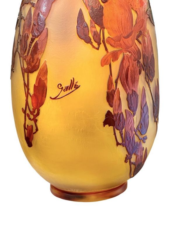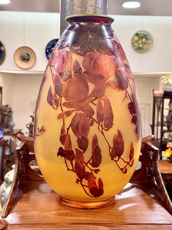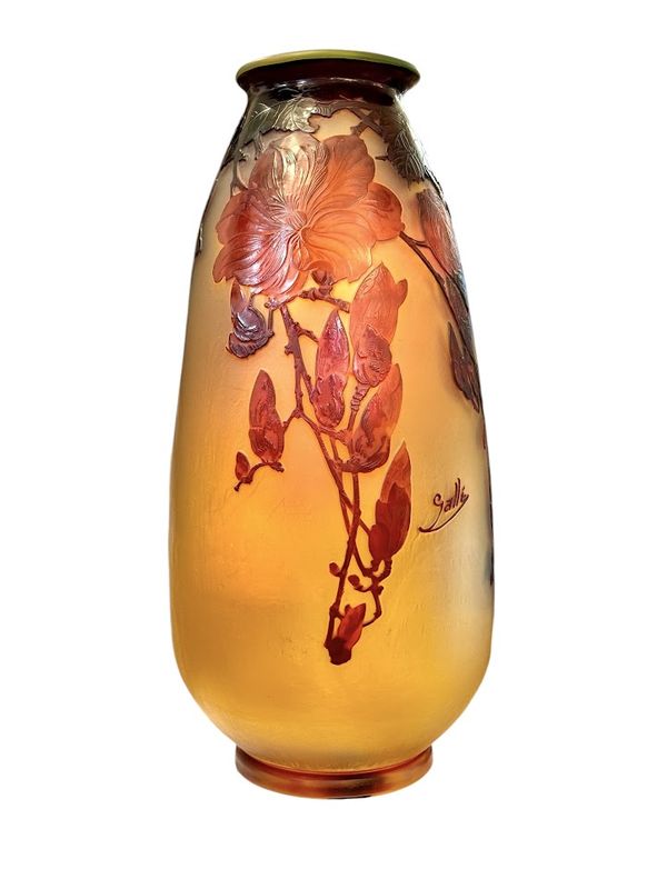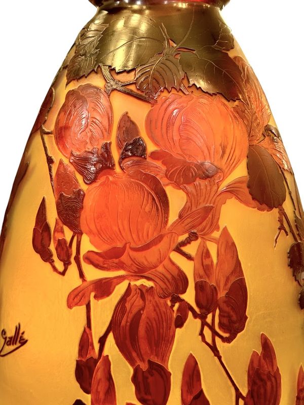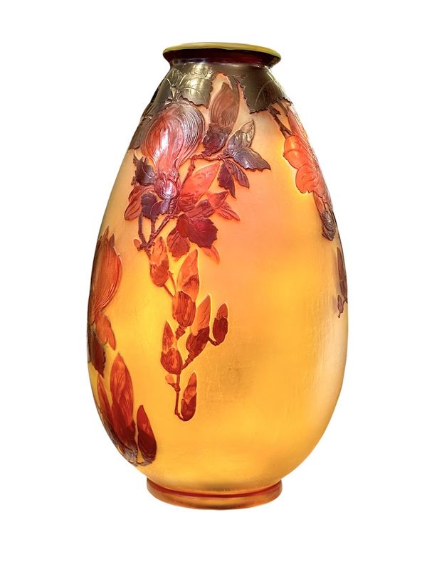 Emile Gallé Important Vase “Magnolias” nathalie rousselot2025-02-21T16:36:19+01:00 Description de l'objet strong> 7 21 février 2025 Verrerie Vase-Gallé-Magnolias- Vase STYLE: Art nouveau ARTISTE: Etablissements Emile Gallé ANNÉE: 1918-1931 DIMENSIONS: H: 46 cm L: 28 cm P: 20 cm PRIX : 13800 Euros Plus d'information Magnifique vase ovoïde à panse méplate sur talon en verre double. Superbe décor gravé en très fines réserves à l'acide, de branches de magnolias fleuries rouges, sur un fond uniformément opacifié jaune orangé. Exceptionnel rendu lumineux! Mes Messages strong> Compétences: Art Nouveau Vase Gallé Aux Magnolias nathalie rousselotCréateur du site Partager Facebook Gazouillement LinkedIn Google + Email