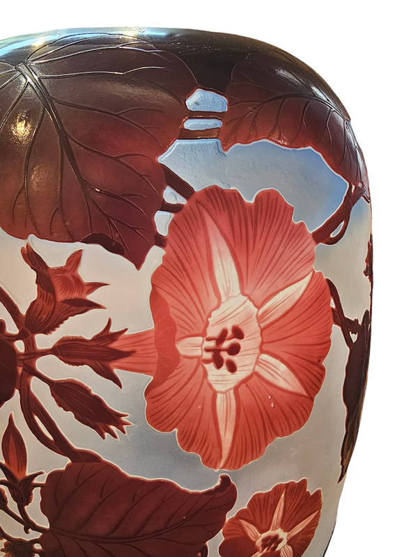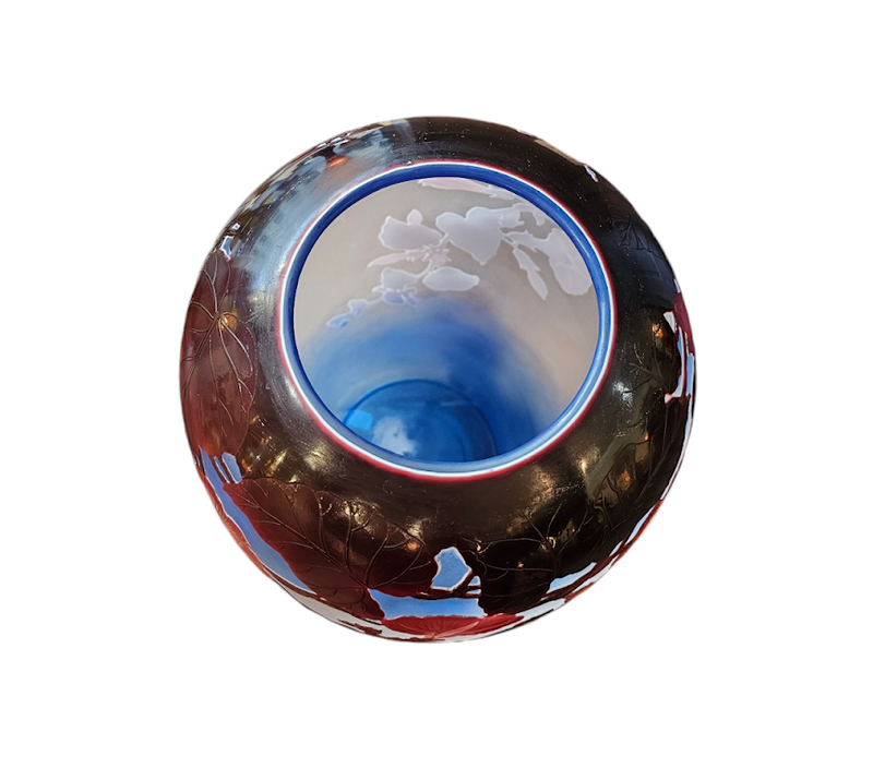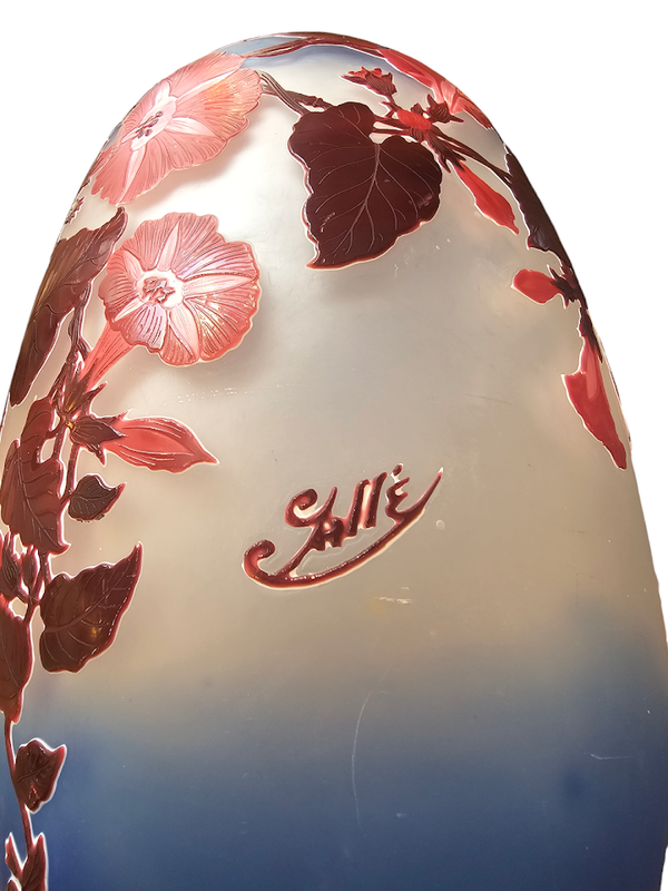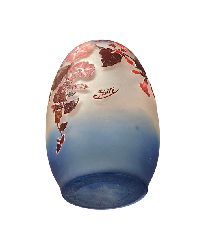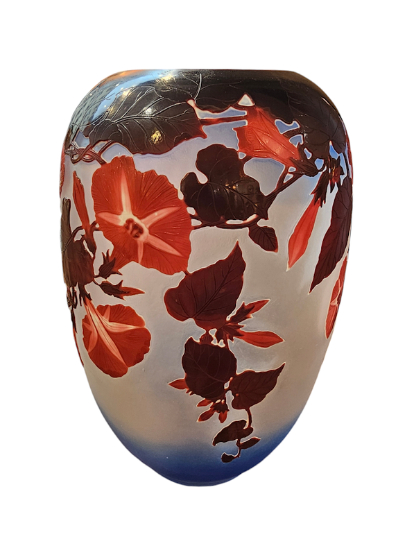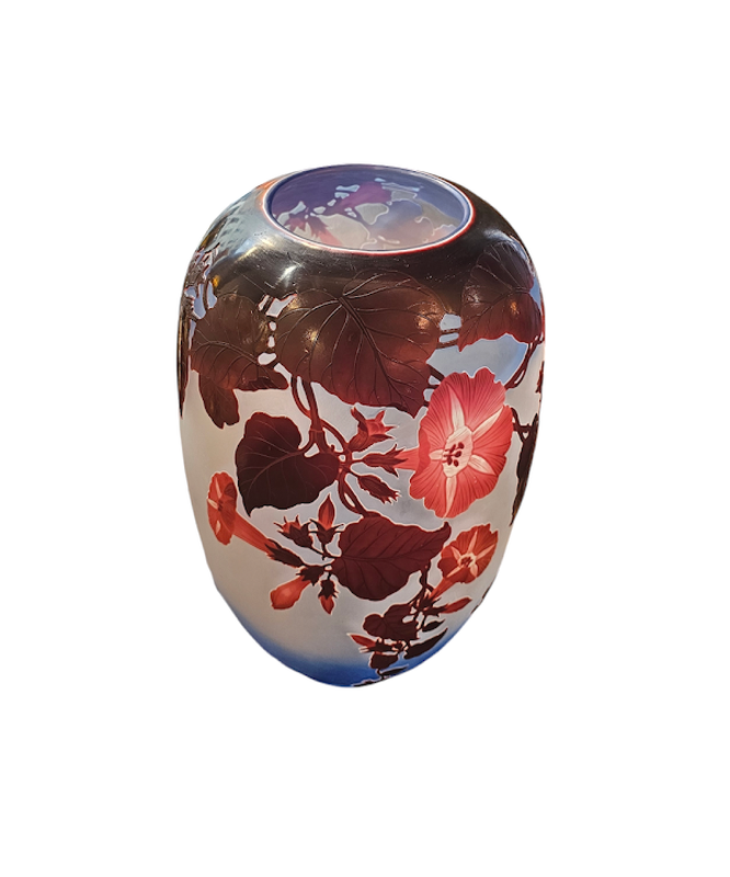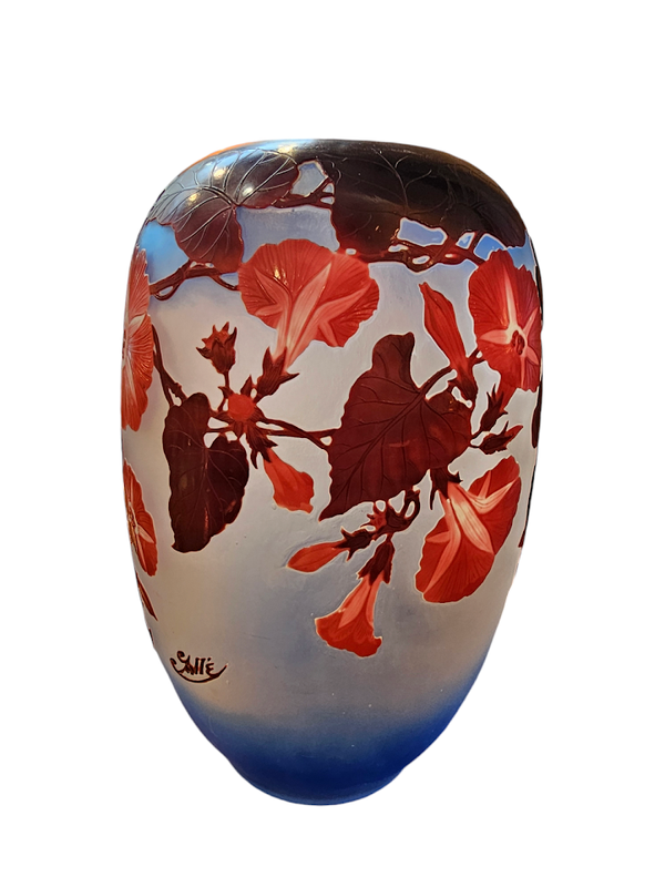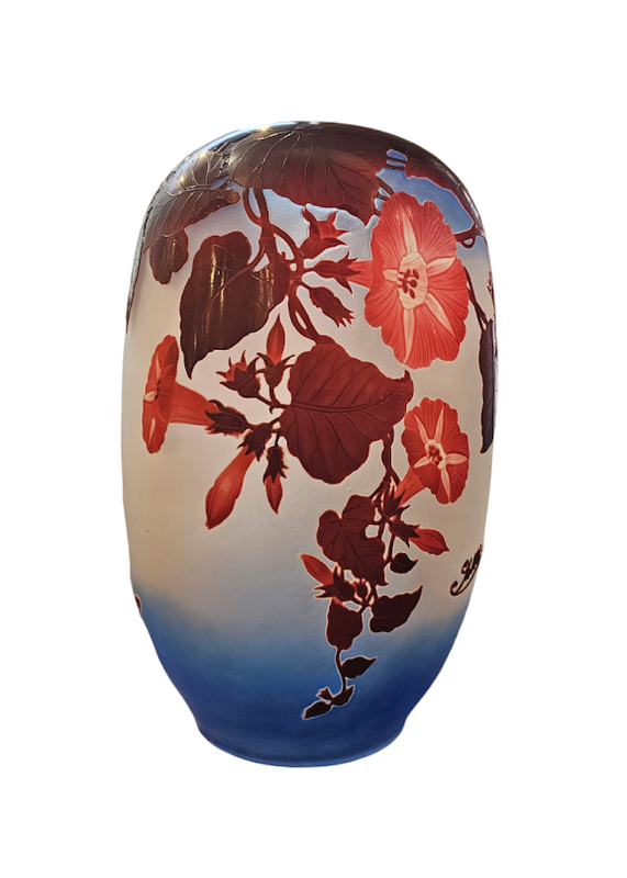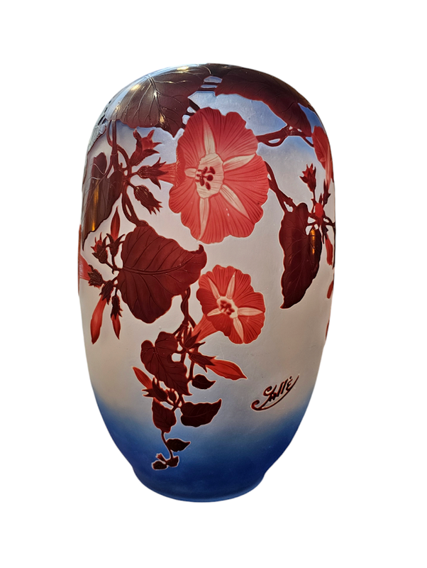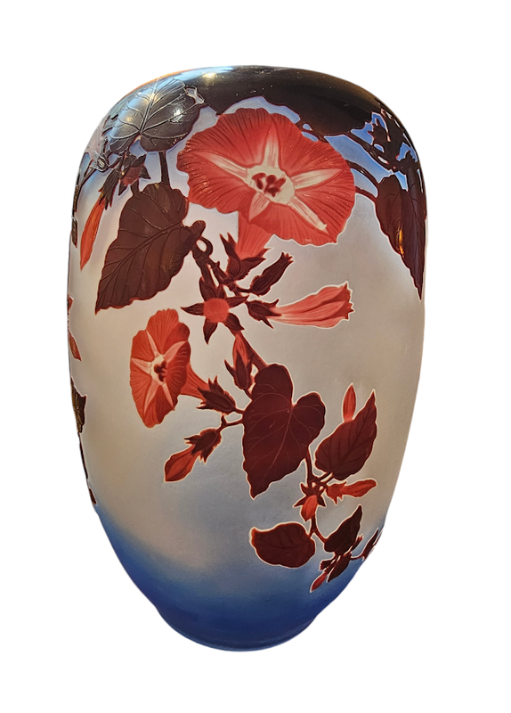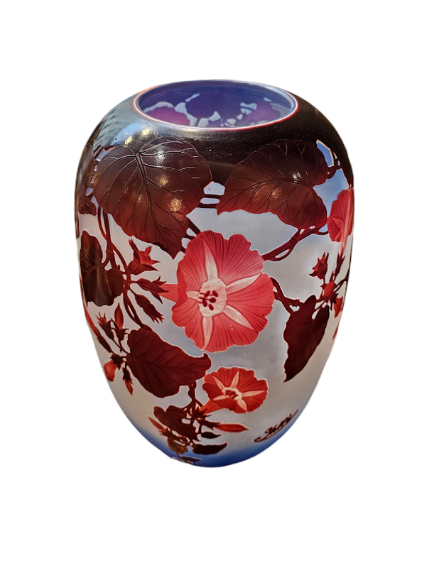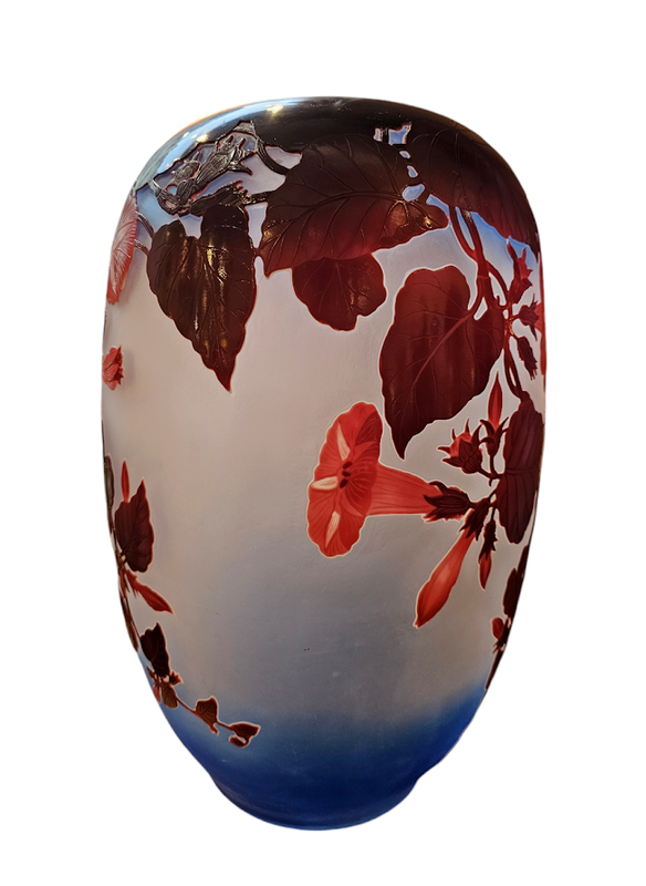 Emile Gallé Important Vase “Volubilis” nathalie rousselot2024-11-14T15:52:56+01:00 Description de l'objet strong> 6 2 novembre 2024 Verrerie Vase-Gallé-Volubilis- Vase STYLE Art nouveau ARTISTE: Emile Gallé ANNÉE 1918-1931 DIMENSIONS Hauteur : 34.5 cm D: 21 cm PRIX : 7800 Euros Plus d'information Superbe vase ovoïde sur talon épaulé et col arrondi en verre triple. Lumineux décor tournant, gravé en fines réserves à l'acide de branches fleuries de volubilis mauves et roses intenses, sur un fond satiné bleu et blanc. Magnifique contraste ! Mes Messages strong> Compétences: Art Nouveau Vase Gallé "Volubilis" nathalie rousselotCréateur du site Partager Facebook Gazouillement LinkedIn Google + Email