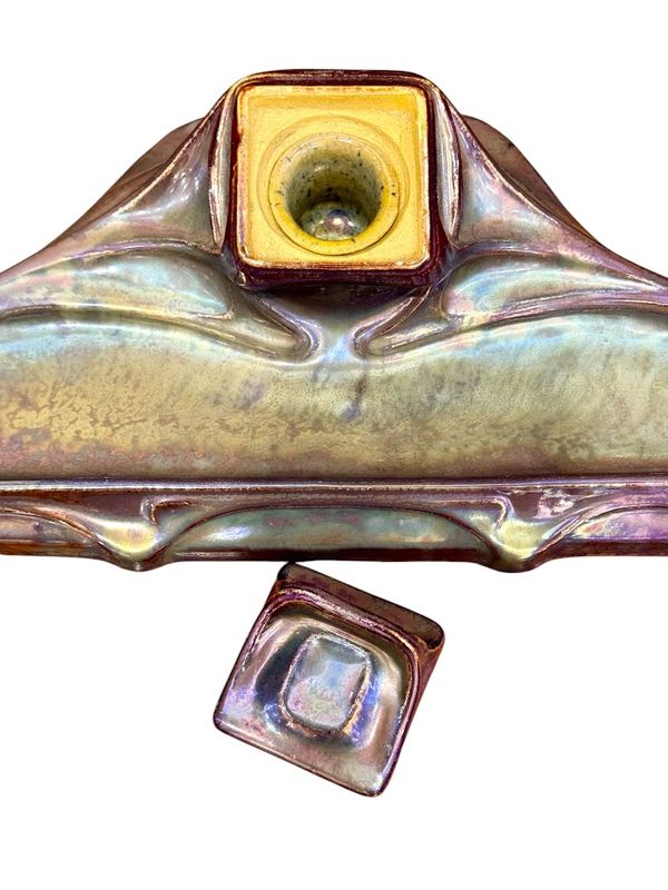 Encrier Rambervillers Gré Flammé ” Art Nouveau” nathalie rousselot2025-03-28T17:25:52+01:00 Description de l'objet strong> 1 28 mars 2025 Verrerie Encrier-En-Gré-Flammé-Art-Nouveau Lampe STYLE Art nouveau ARTISTE Rambervillers ANNÉE 1905-1931 DIMENSIONS L : 28 cm, P : 16 cm, H : 10 cm PRIX : 1280 Euros Plus d'information Joli encrier Art Nouveau en gré flammé, recouvert d'un émail à reflet métallique, dans les tons nuancés de verts et mauves. Signature en creux de A Cytère Unis France en dessous. Très belle qualité de réalisation ! Mes Messages strong> Client: Focalys - http://www.focalys.com Compétences: Art Nouveauluminaire Encrier Rambervillers "Art Nouveau" nathalie rousselotCréateur du site Partager Facebook Gazouillement LinkedIn Google + Email