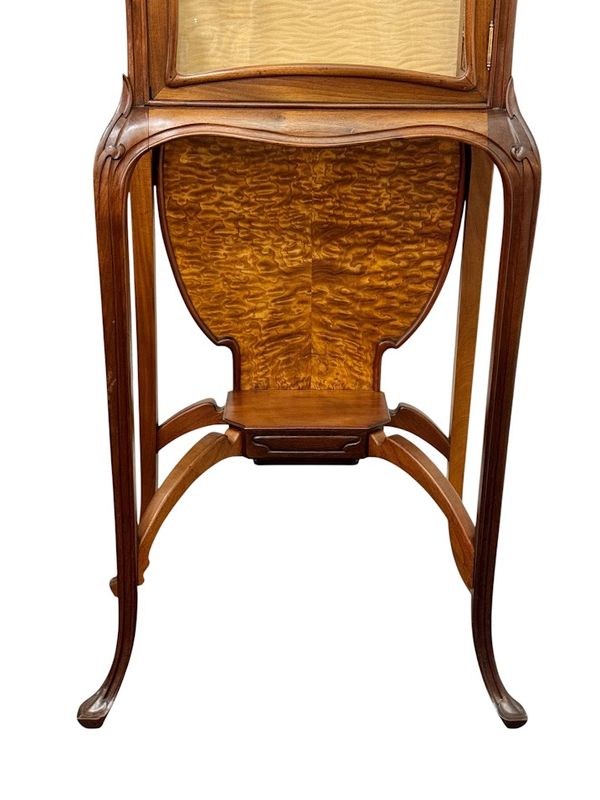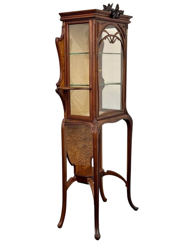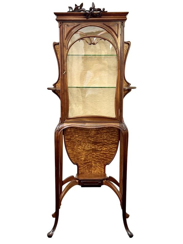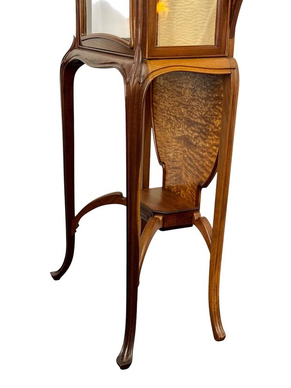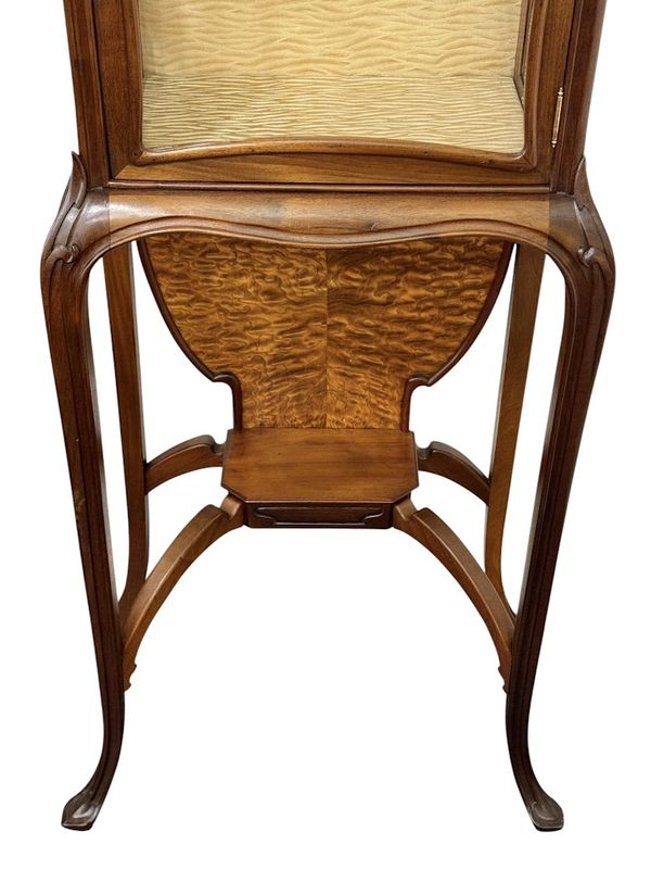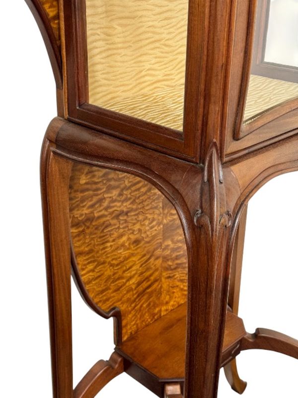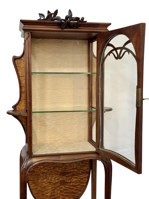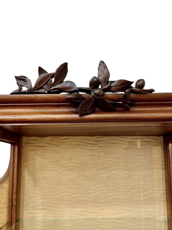 Superbe vitrine en acajou massif et placage de frêne du japon, moulurée, ajourée et sculpté à décor de coups de fouet.