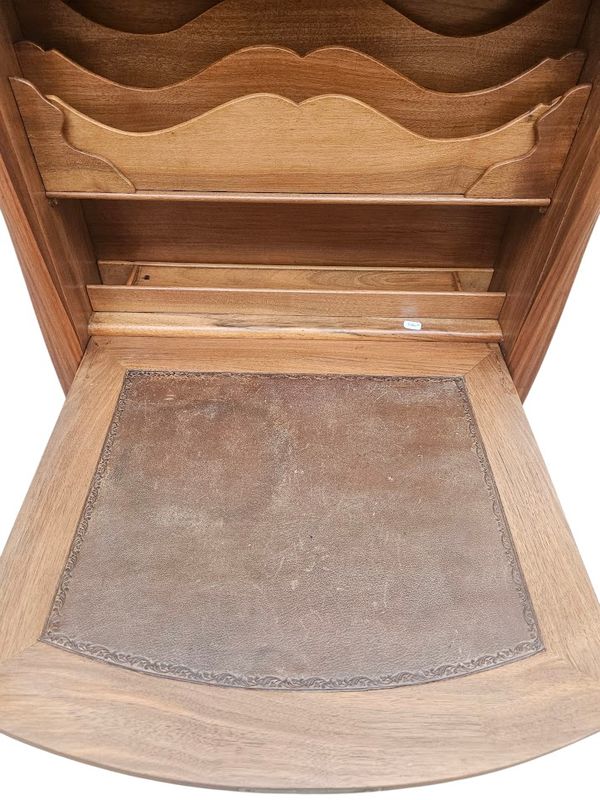 Rare bureau de dame dit "billet doux" en noyer massif mouluré, sculpté et marqueté toutes faces.