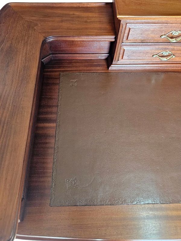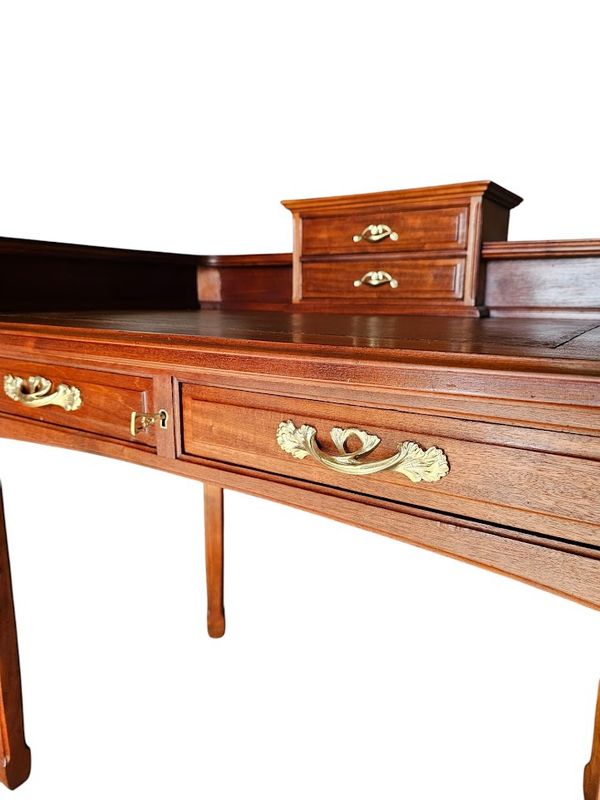 Superbe bureau en acajou blond massif mouluré et galbé.