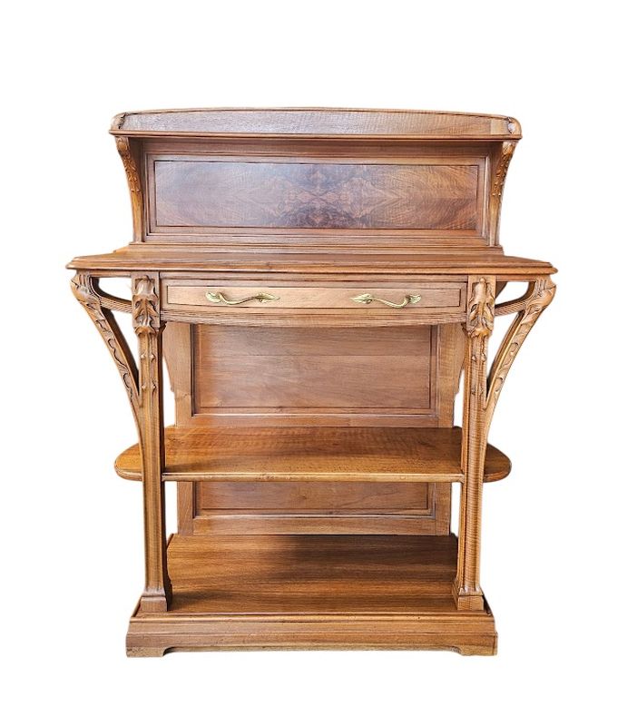 Le plateau supérieur est coiffé d'un dosseret panneauté à tablette.