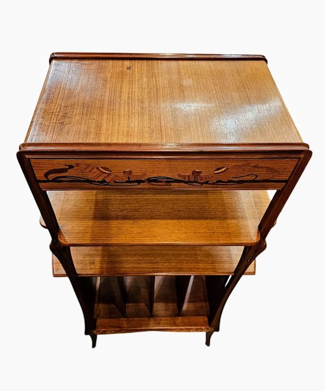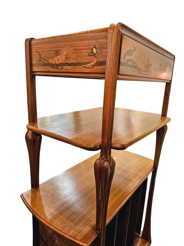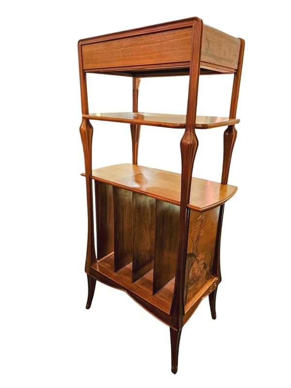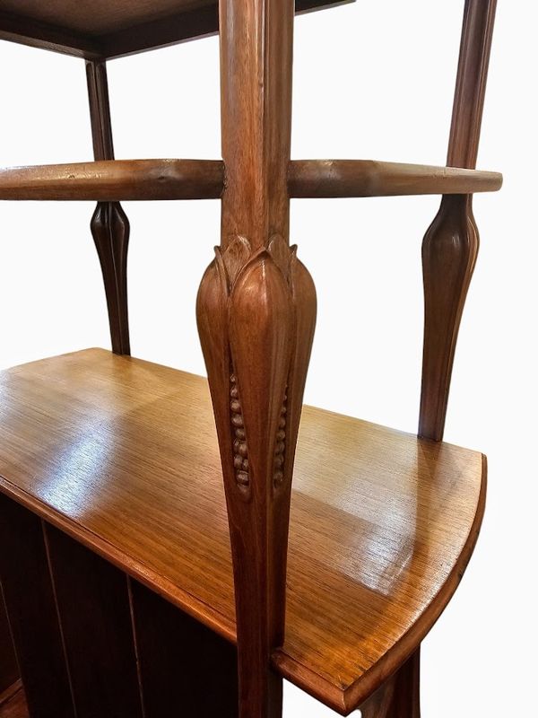 Etagère de présentation formant casier à musique en acajou massif, mouluré et sculpté.