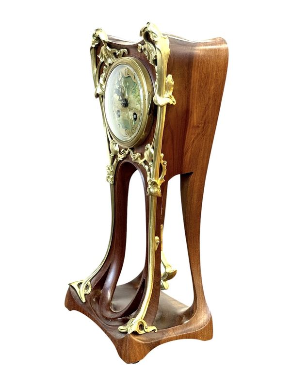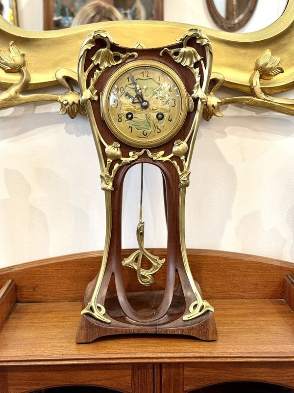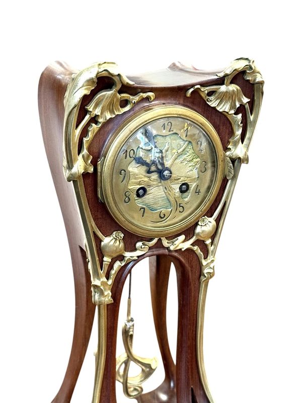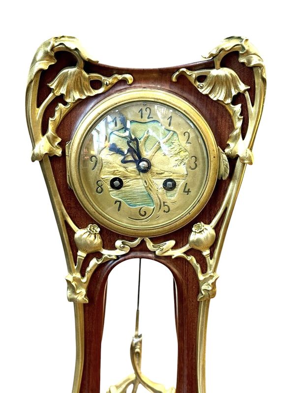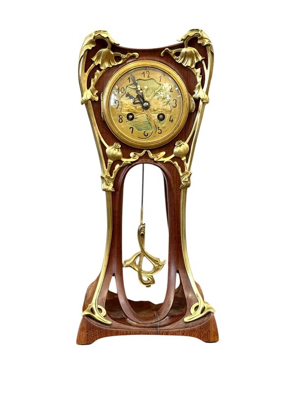 Le cadran à patine polychrome présente un décor lacustre arboré, balancier d'origine, parfait état de fonctionnement.