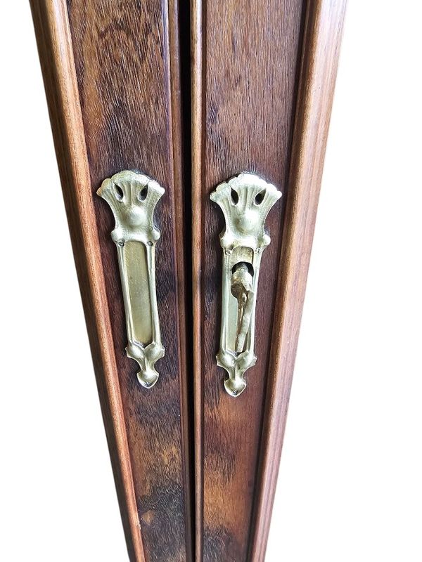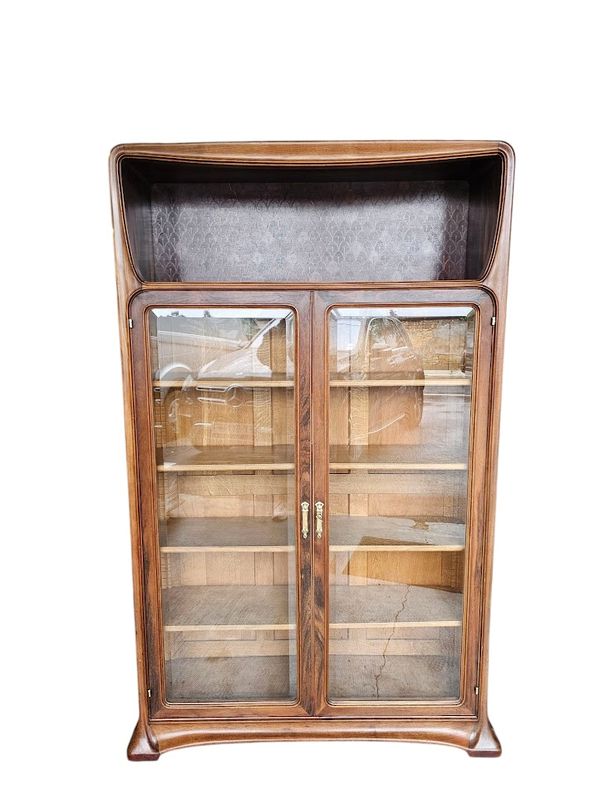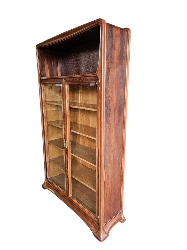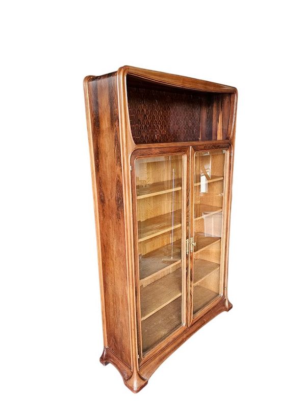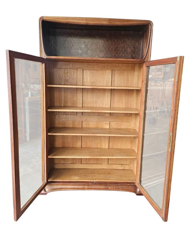 Vitres biseautées, entrées de serrures et clefs en bronze doré, étagères modulables en hauteur.