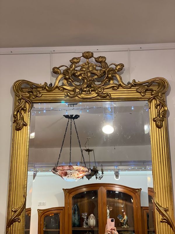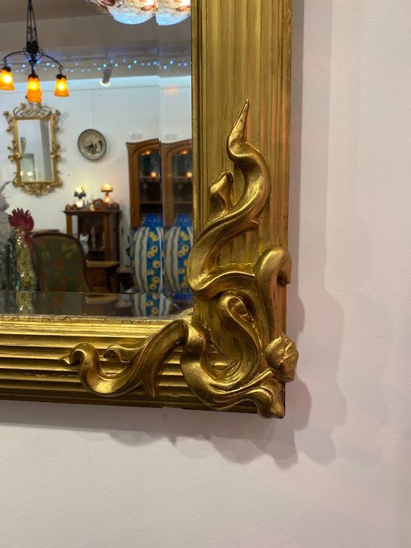 Superbe miroir en bois stuqué et doré, à décor en haut relief de fleurs
