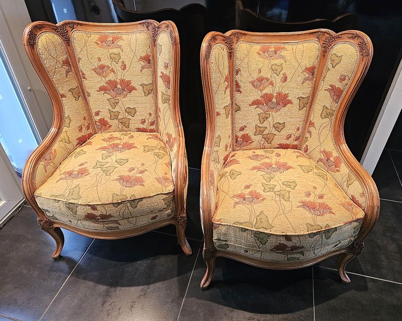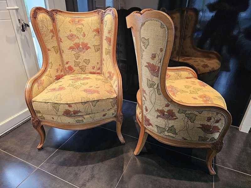 Elles ont été restaurées de façon traditionnelle par notre tapissier professionnel, elles disposent d'un coussin d'assise amovible .