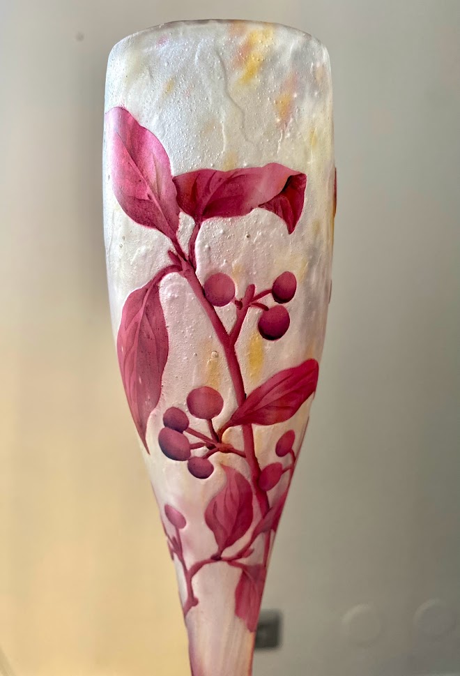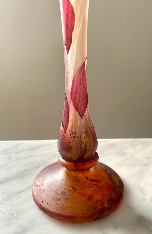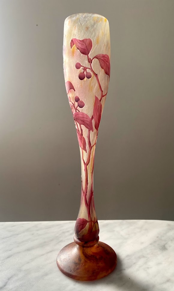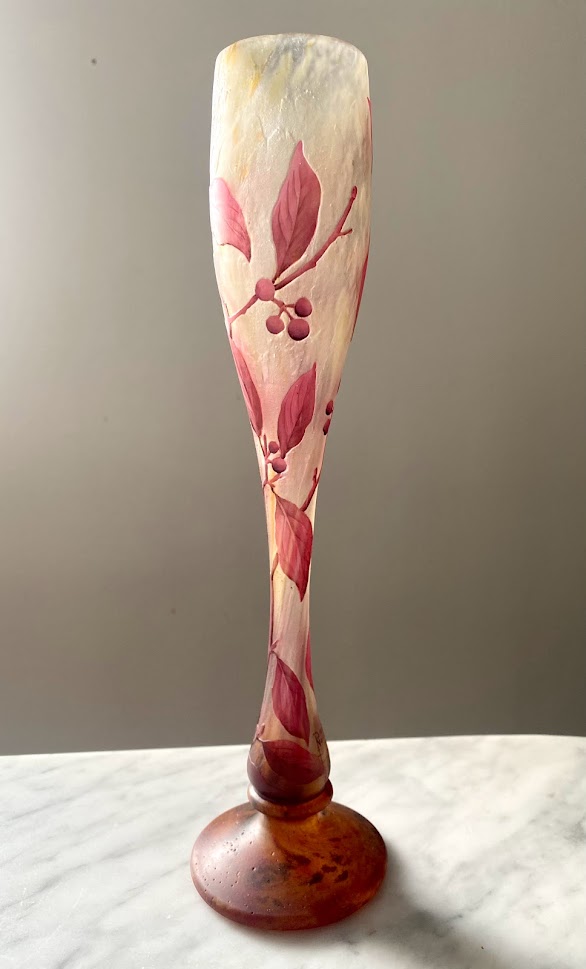 Vase Daum “Aux Baies” nathalie rousselot2022-07-30T18:13:44+02:00 Description de l'objet strong> 2 30 juillet 2022 Verrerie Vase STYLE Art nouveau ARTISTE Daum ANNÉE 1915-1939 DIMENSIONS h : 32 cm D : 5,5 cm D Pied : 8cm PRIX : 2600 Euros Plus d'information Vase élancé sur piédouche en verre marmoréen, à décor gravé et émaillé de baies, sur un fond granité dans les tons blancs, roses jaunes et orangers. Couleurs très lumineuses! Mes Messages strong> Compétences: Art Nouveau Vase Daum Nancy Aux Baies Partager Facebook Gazouillement LinkedIn Google + Email
