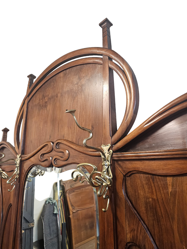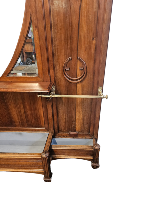 Spectaculaire vestiaire en noyer massif mouluré et sculpté à décor de coups de fouet.